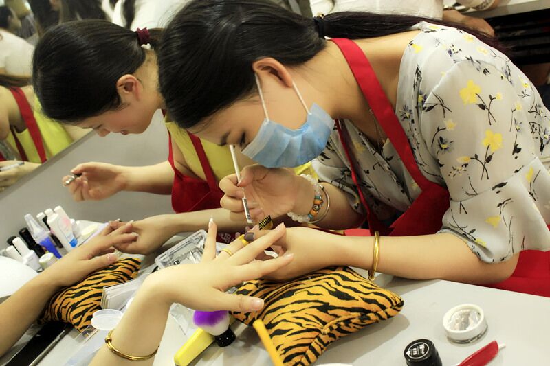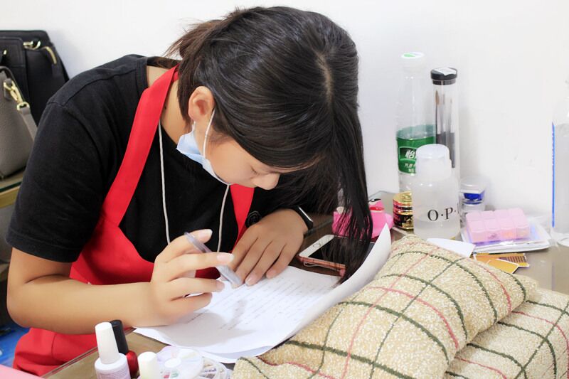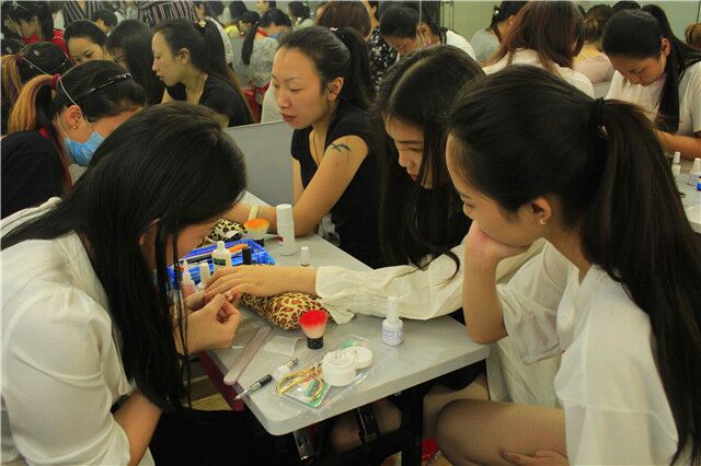 今天是樂(lè)清陽(yáng)洋化妝美甲培訓(xùn)學(xué)校學(xué)員的月考 陽(yáng)洋學(xué)校定期會(huì)舉行階段性的考試 這是督促老師檢驗(yàn)學(xué)員的學(xué)習(xí)情況 及時(shí)根據(jù)學(xué)員學(xué)習(xí)進(jìn)度 制定針對(duì)性教學(xué) 也是學(xué)員對(duì)上一階段學(xué)校成果展示 向美甲專業(yè)同學(xué)學(xué)習(xí),互相取長(zhǎng)補(bǔ)短