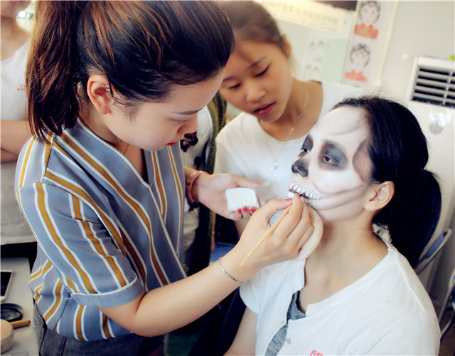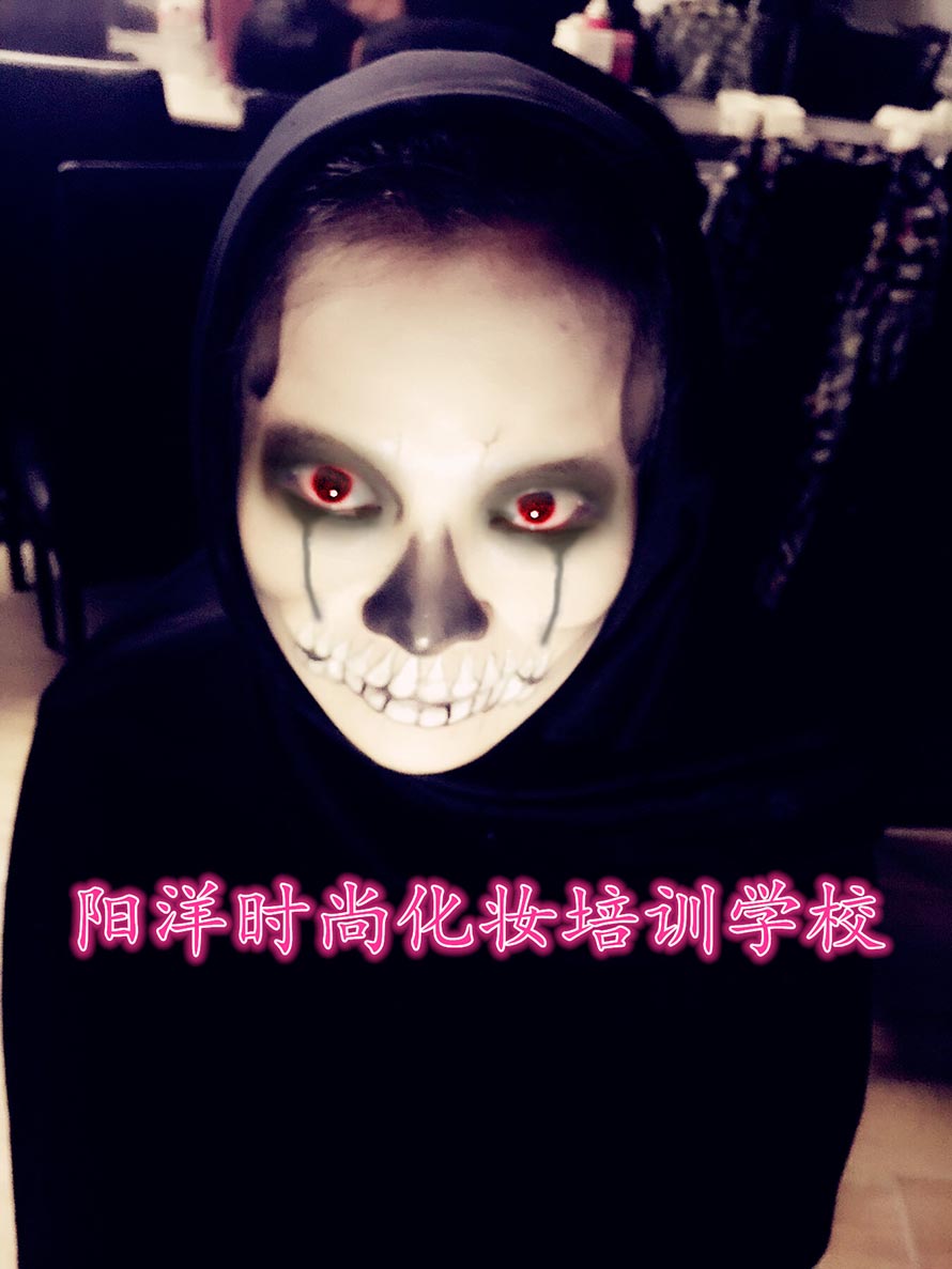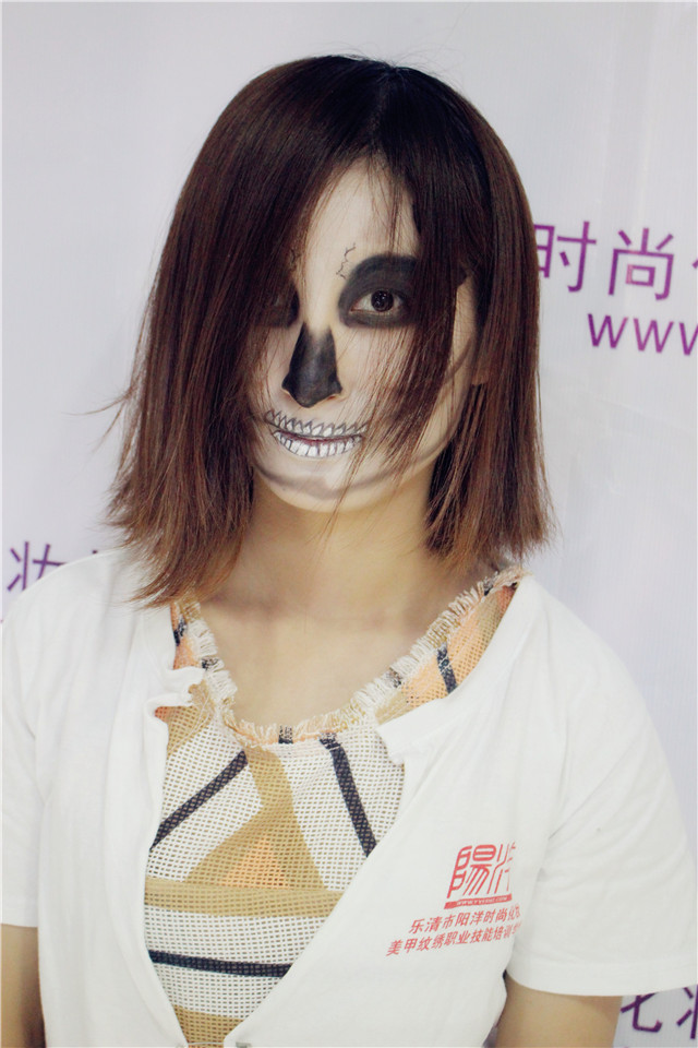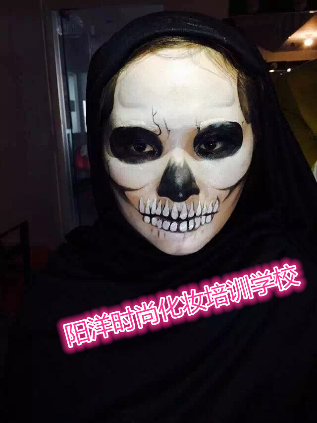所謂骷髏妝,就是要求將臉部用油彩畫成骷髏的形狀。影視化妝中個性妝的一種。 因為畫這種妝需要對人的骨骼結構有足夠的認識,所以被稱為影視妝容的基礎課程。 是成為優秀化妝師的必修課。