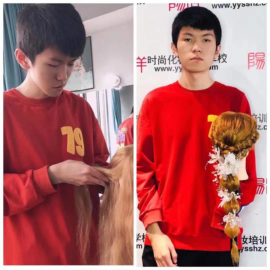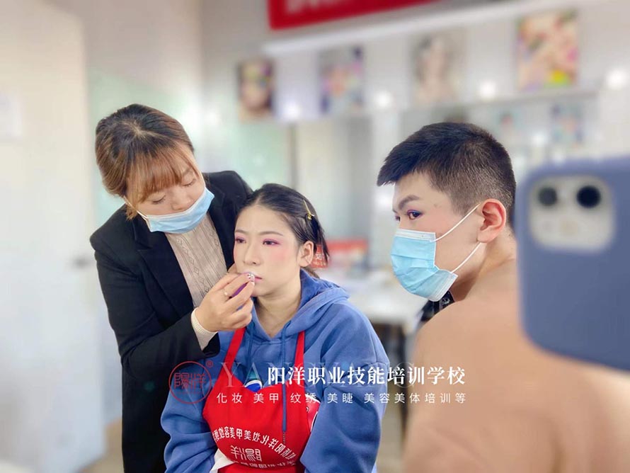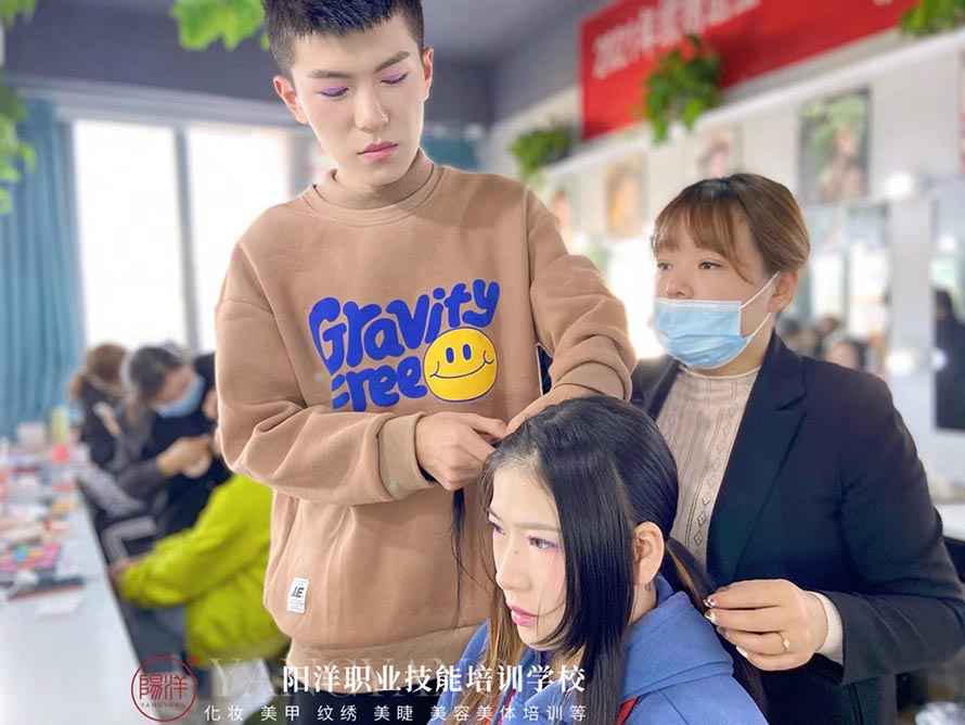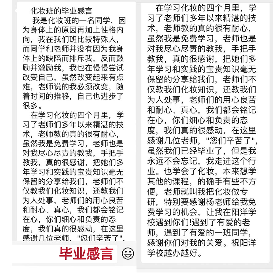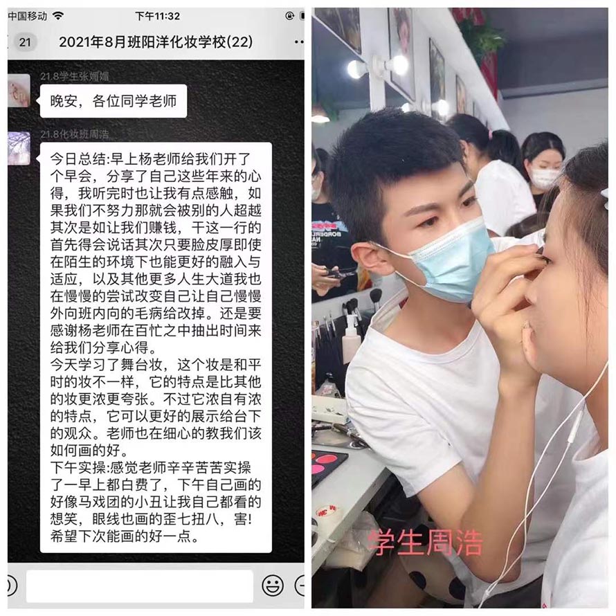 經過這段時間的學習,他說感恩陽洋化妝培訓學校,感恩楊老師給他學習的機會,真心祝福他的未來越來越好。把他的化妝技術帶給更多的人。