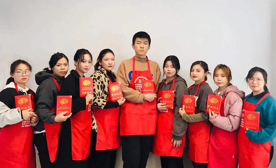 和同學的畢業合影, 畢業證書可以終身免費進修新技術, 這是陽洋學校對每一個學員的承諾,學不會,接著學,學會為止。