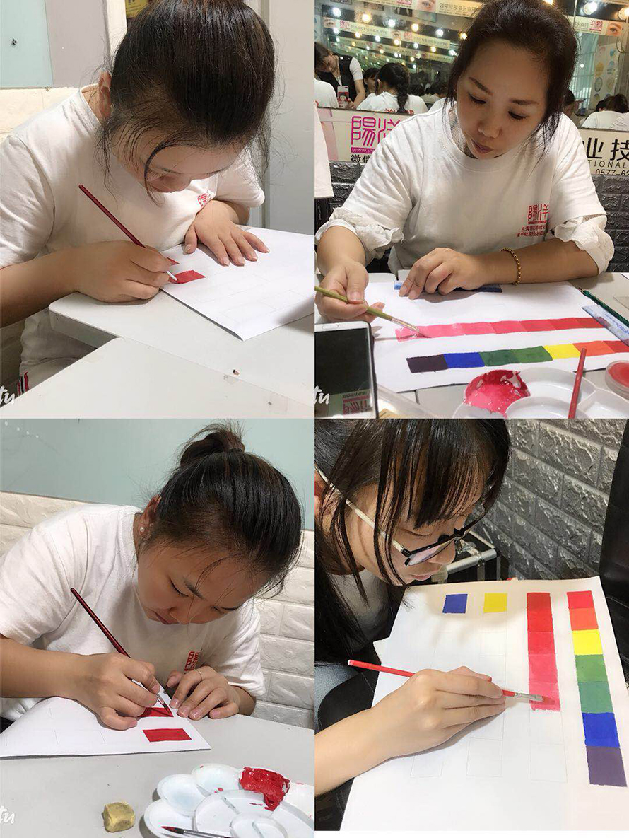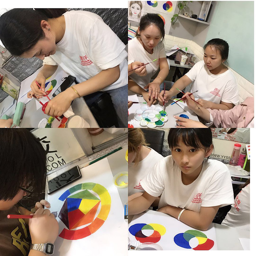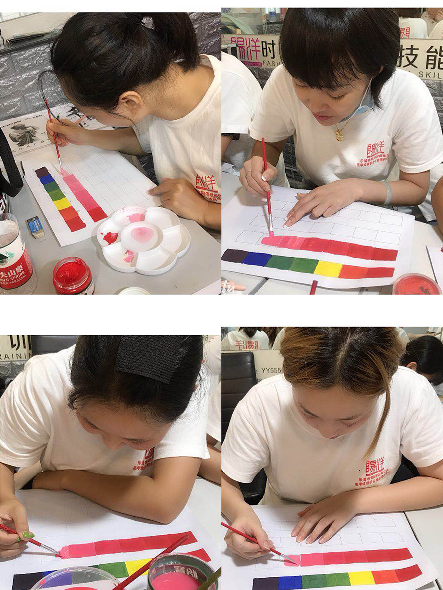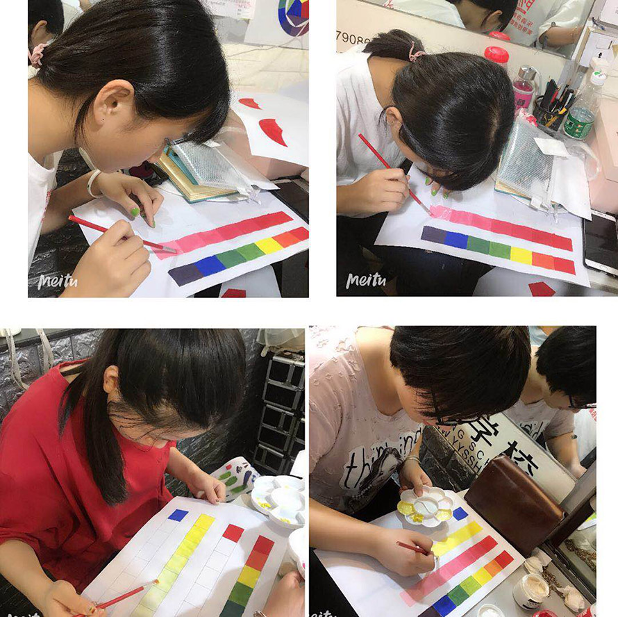 0基礎的同學們正在用“紅、黃、藍”三原色,調和出其它各種顏色,學習色彩只聽不練其實不行的,特別對于新手化妝師,所以建議大家有機會的話都要練習下色相環(huán)。
