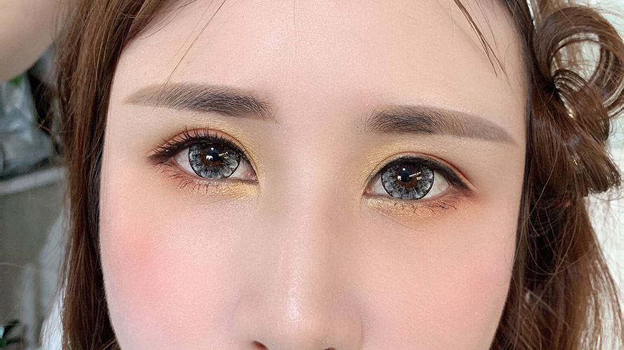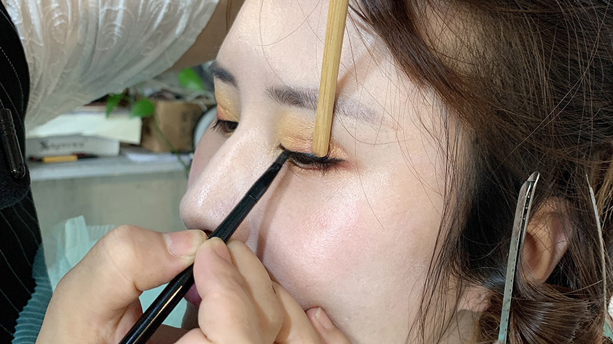 眉部完成后,這個時候眼部的睫毛膏也干了,假睫毛可以選用較為纖細的朵毛粘貼。