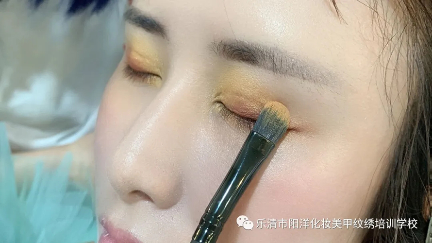 底妝完成后,我們就開始眼妝部分了哦!眼影重點在眼窩處,從外眼角到內眼角輕涂暈開,眼頭處顏色不要深刷子提亮眉弓骨并掃開眼影邊緣顏色,要做到有形而無框