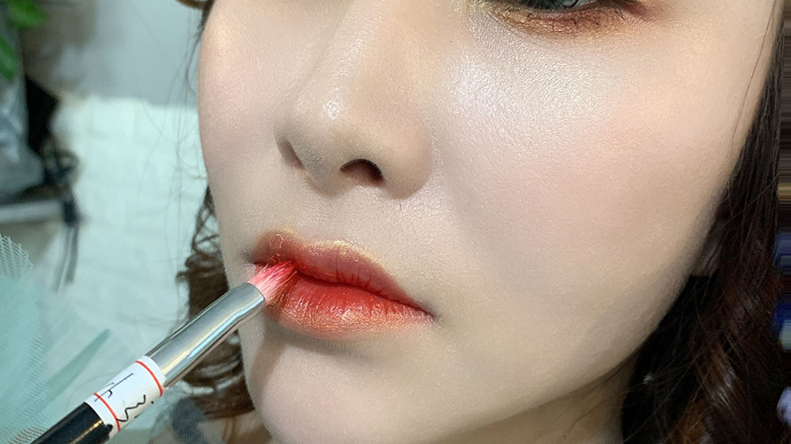 因為模特自身部分有受傷,有點小皮皮,但是也不影響上妝的美感哦,所以你們也要客人在此之前做好唇部的滋潤哦。