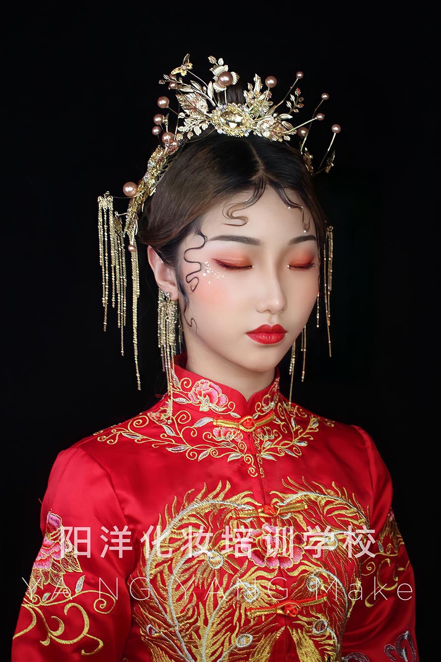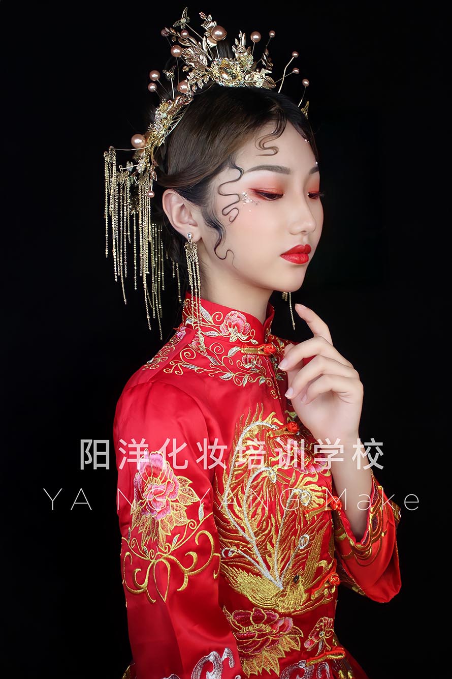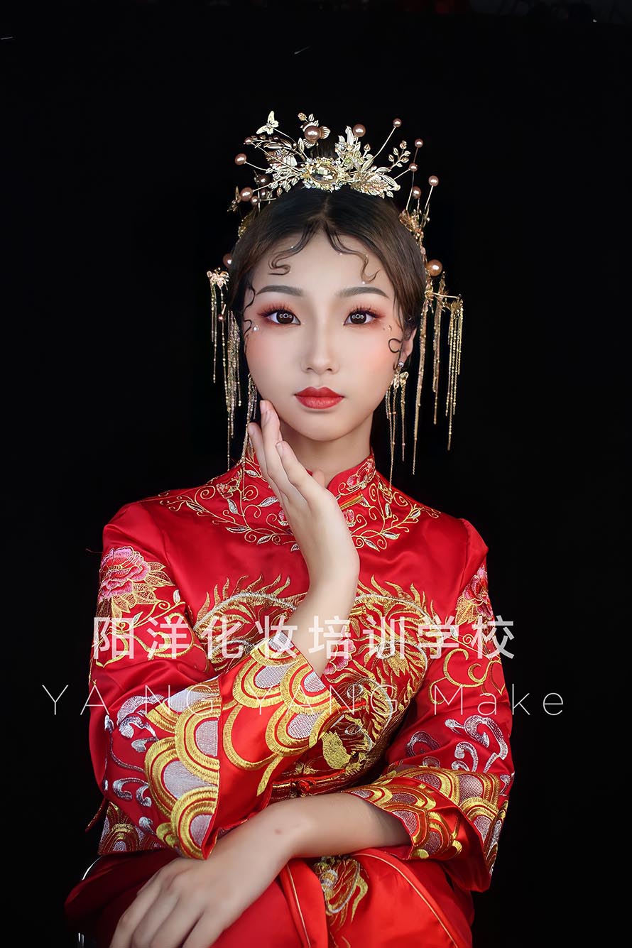 1、眼妝:中式婚禮上都是穿中式禮服的,所以眼妝的色彩用暖色是最合適的。
