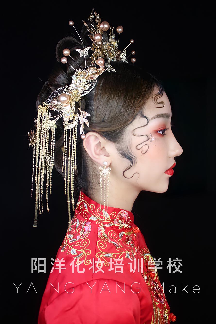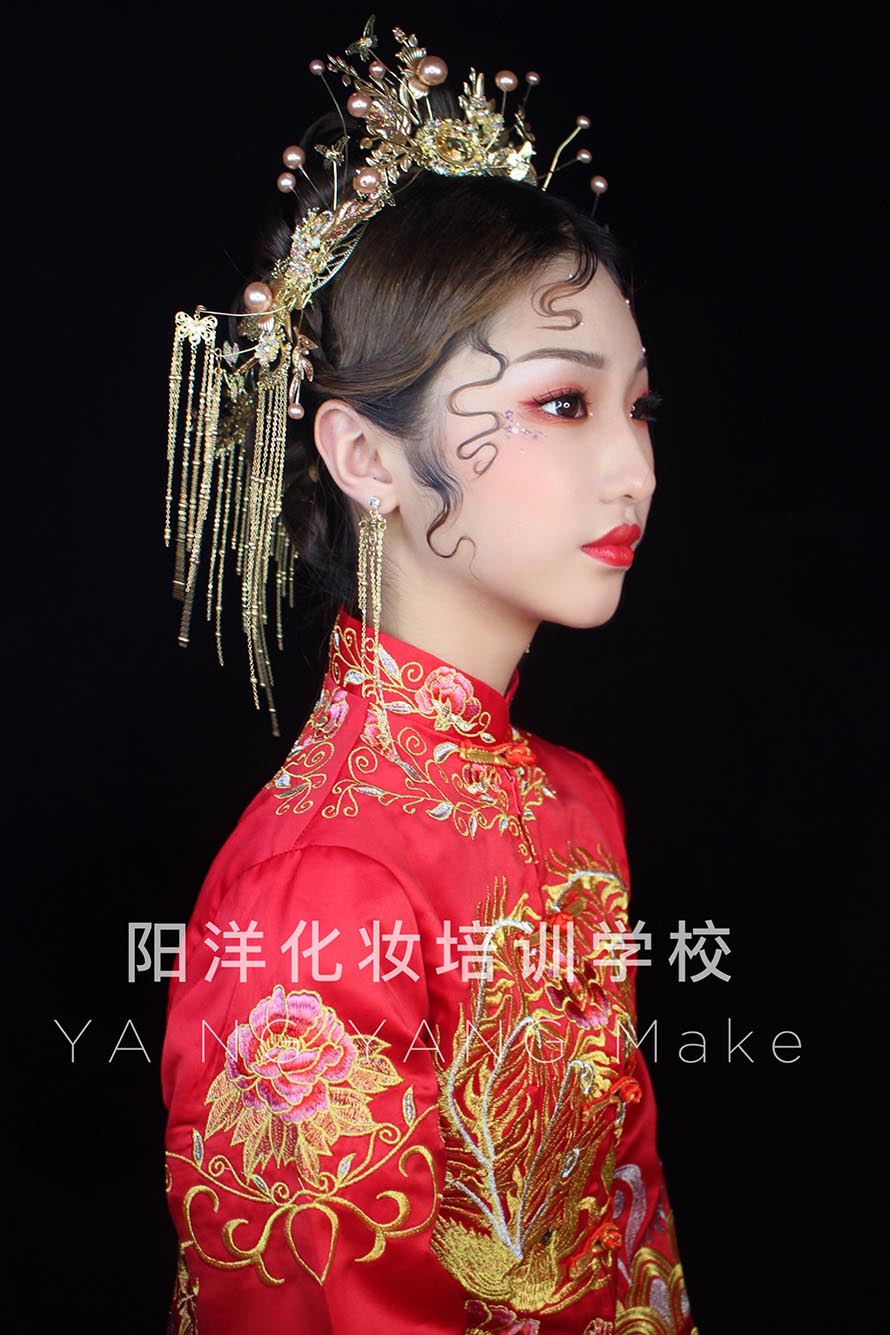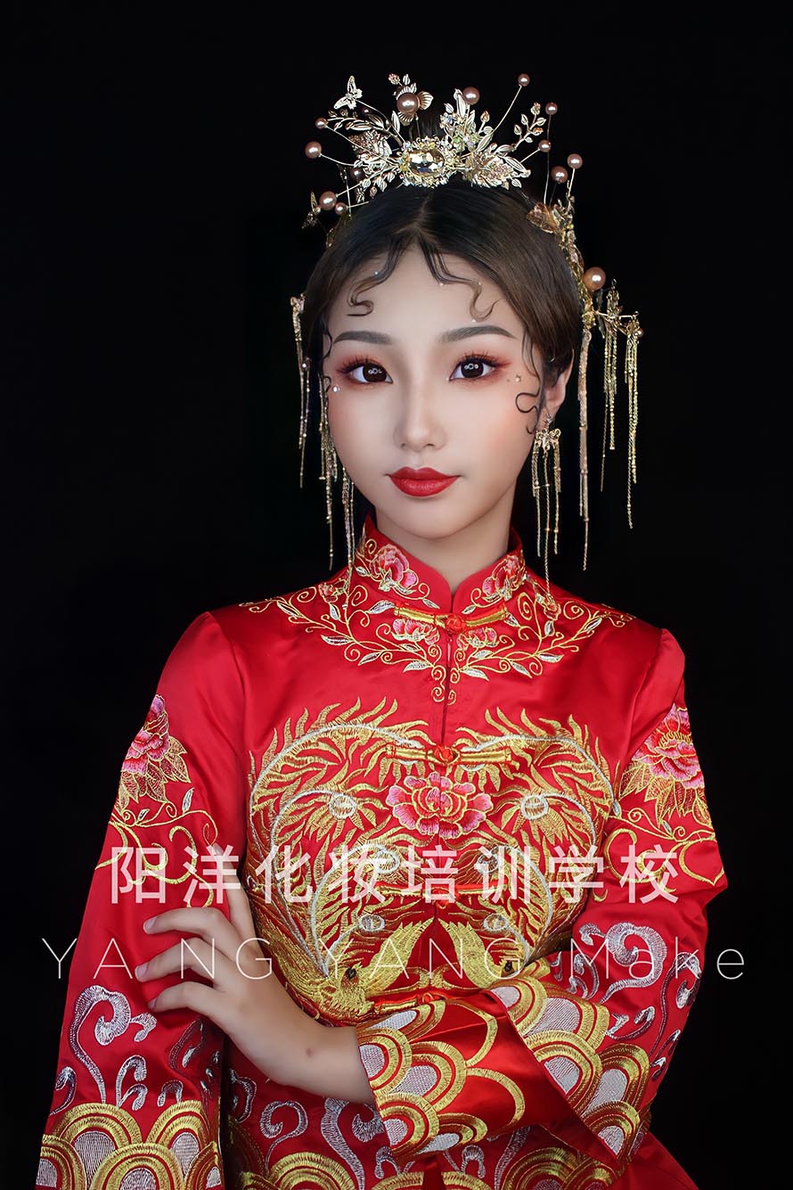 1、眼妝:中式婚禮上都是穿中式禮服的,所以眼妝的色彩用暖色是最合適的。