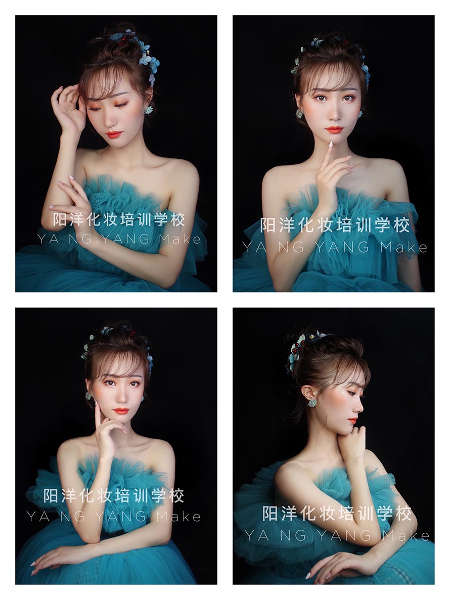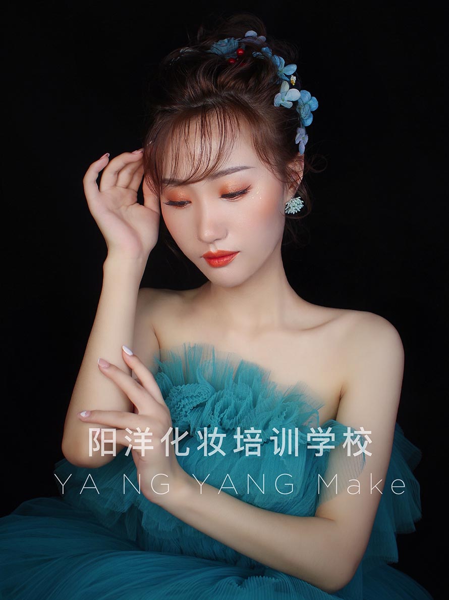 亦不可濃妝艷抹,而應(yīng)理性地采用輕描淡寫的手法,運(yùn)用較少量的化妝品和柔淡的彩妝色,突顯新娘的自然美。