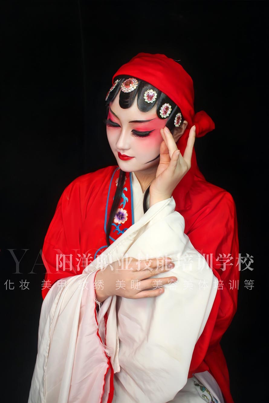 勒頭就是用布帶子把頭勒緊,把眼睛吊起來(lái),以便更好的塑造角色的造型、性格。