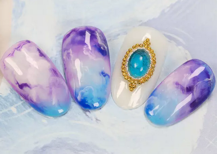 單色半貼水晶甲的制作流程 色彩的過渡、構(gòu)圖技巧