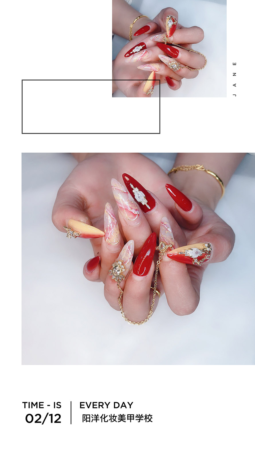 新年怎么能少得了紅色美甲,新年穿紅色走好運,當然涂一個紅色的美甲也是可以的,除了純色調子的,