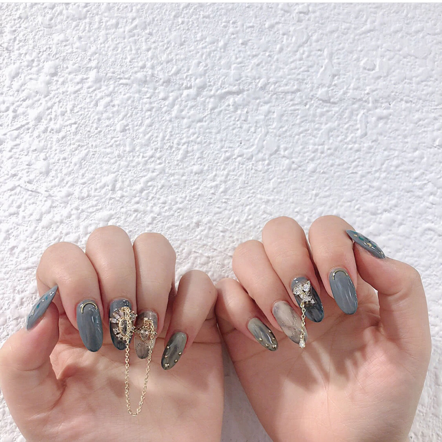 有些姑娘們走的就是奢華系列,純色調子的美甲對于她們來說太過普通,必須要有鑲磚的bingbling美甲才夠勁!