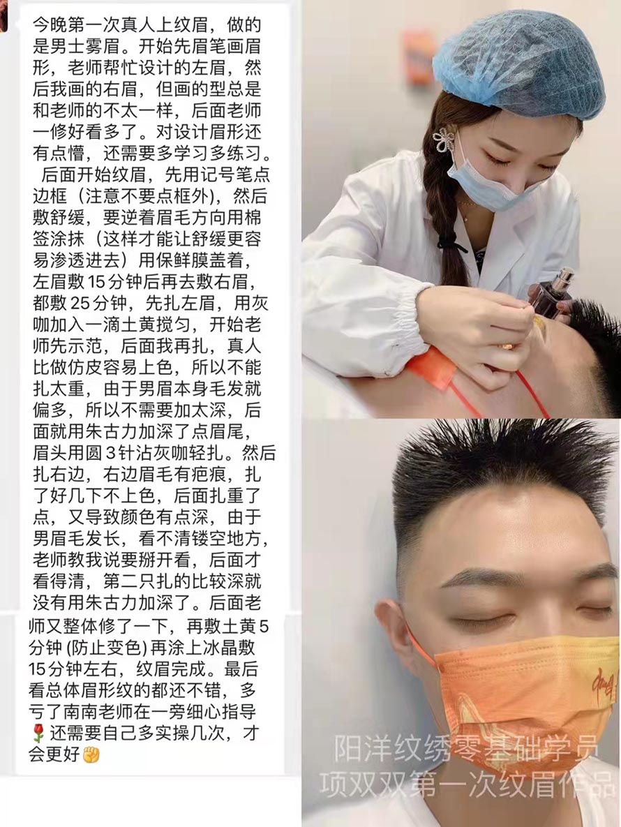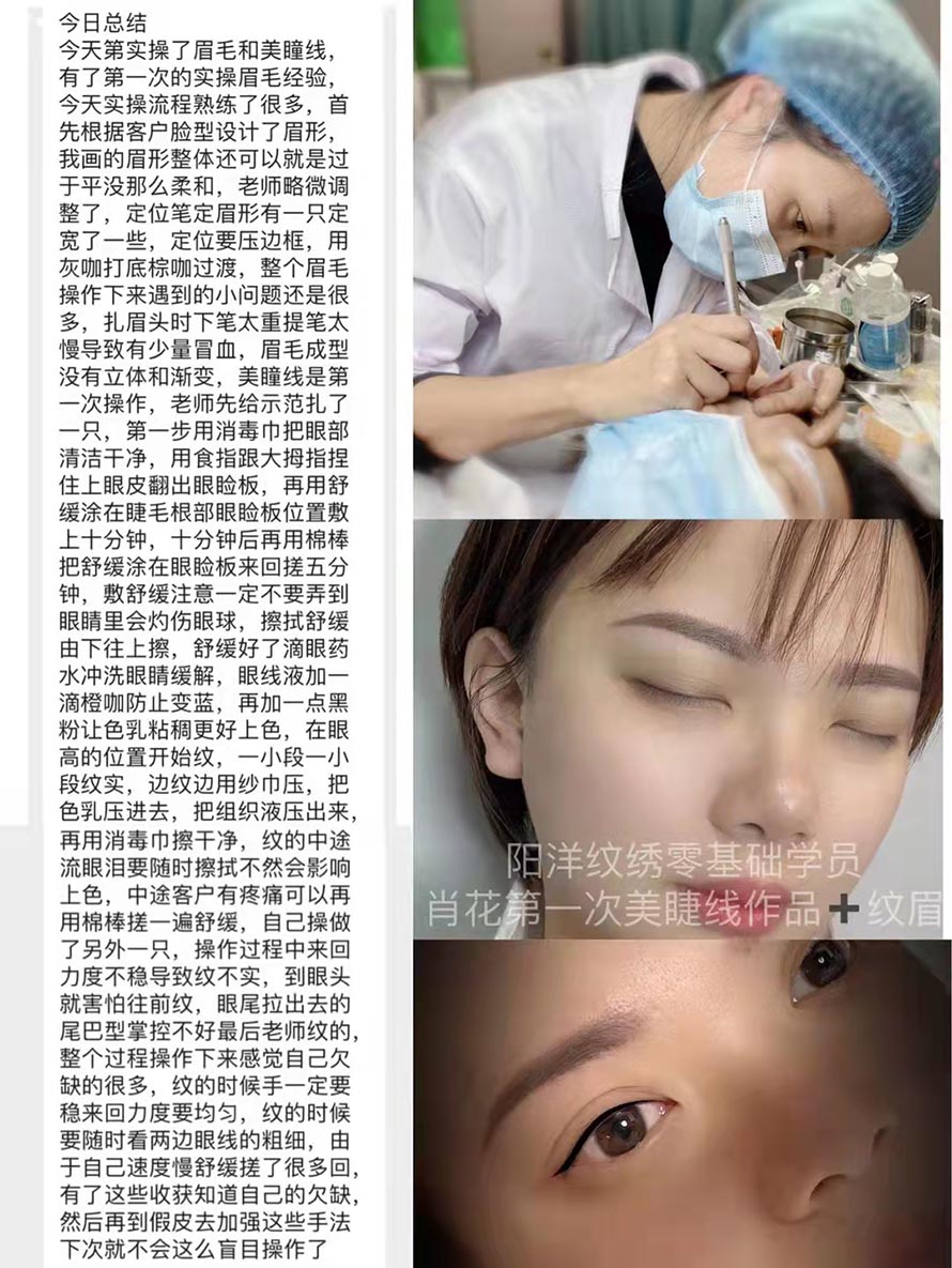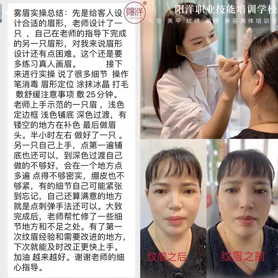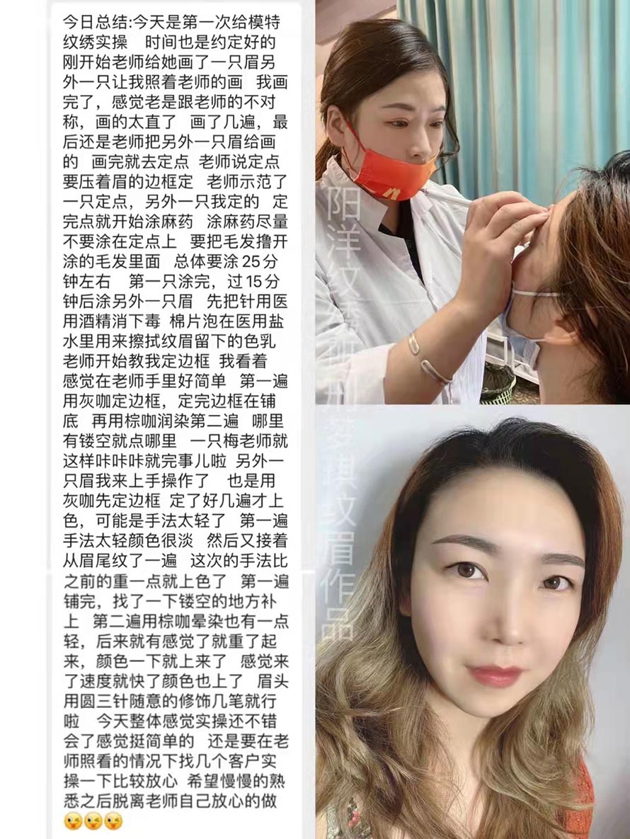 在眉形設計、霧眉、線條眉、等訓練上都需要一周時間左右,再加上真人實操的時間。