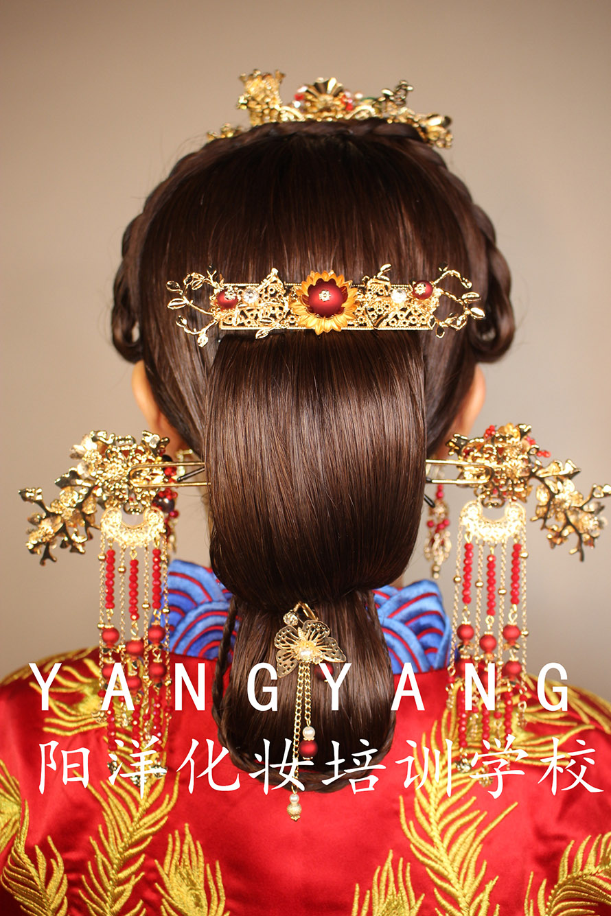 在老師的嚴格教學下,在同學們的努力學習后,第一次成功獨立完成了中式新娘整體造型。