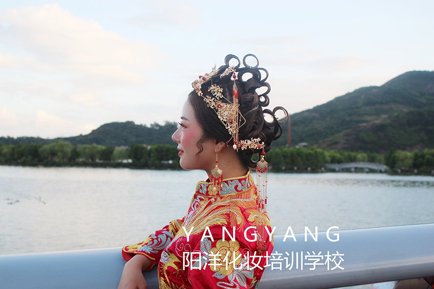 學習妝容加發型和服裝的整體造型,第三個月以新娘妝為主。