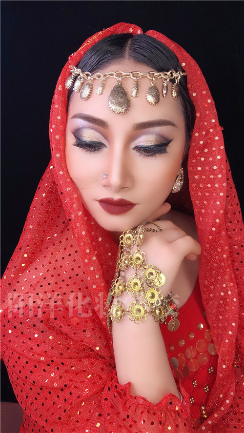 印度美女造型通常采用戲劇舞臺的化妝手法和印度鳳族的事物進行設計。