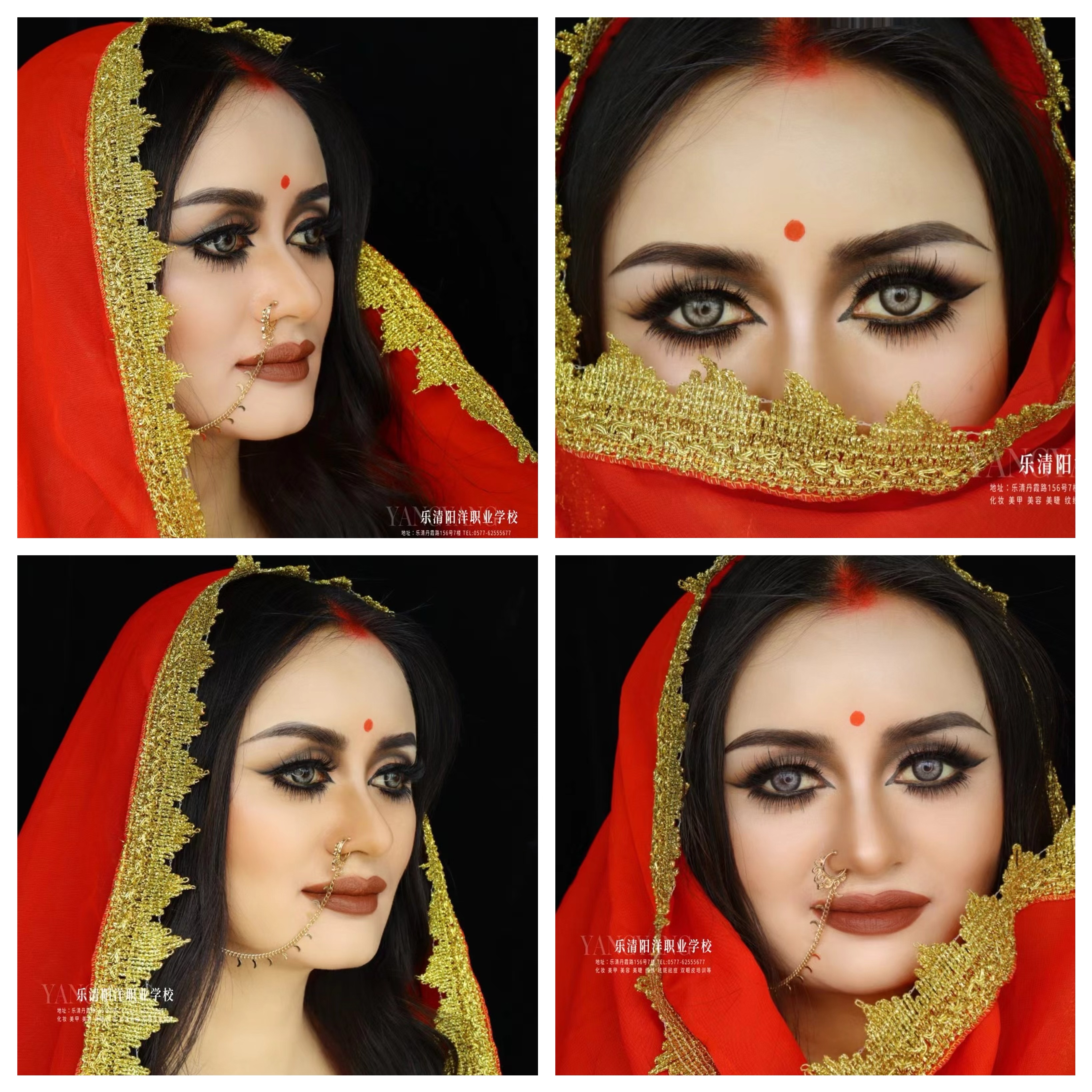 印度妝容四色彩濃郁,輪廓鮮明立體,濃眉大眼,熱情甜美,配上奢華的沙麗。更添異域風情