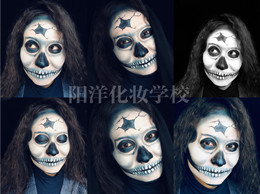 骷髏妝是影視化妝中個性妝的一種。所謂骷髏妝就是要求將臉部用油彩畫成骷髏的形狀。是成為優秀化妝師的必修課。