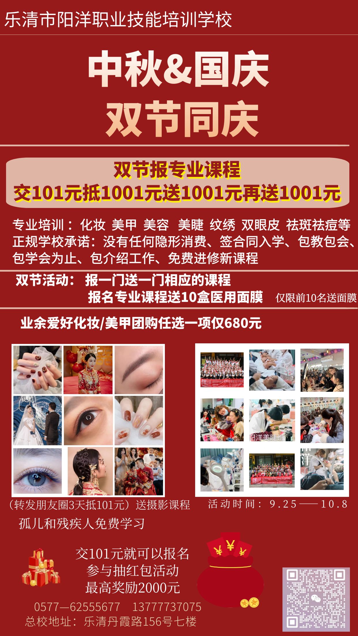 當(dāng)前位置:樂(lè)清市陽(yáng)洋職業(yè)技能培訓(xùn)學(xué)校 » 優(yōu)惠資訊中秋&國(guó)慶雙節(jié)同慶活動(dòng)來(lái)寵發(fā)布時(shí)間:2023-9-26 22:03:33 瀏覽次數(shù):1995 |