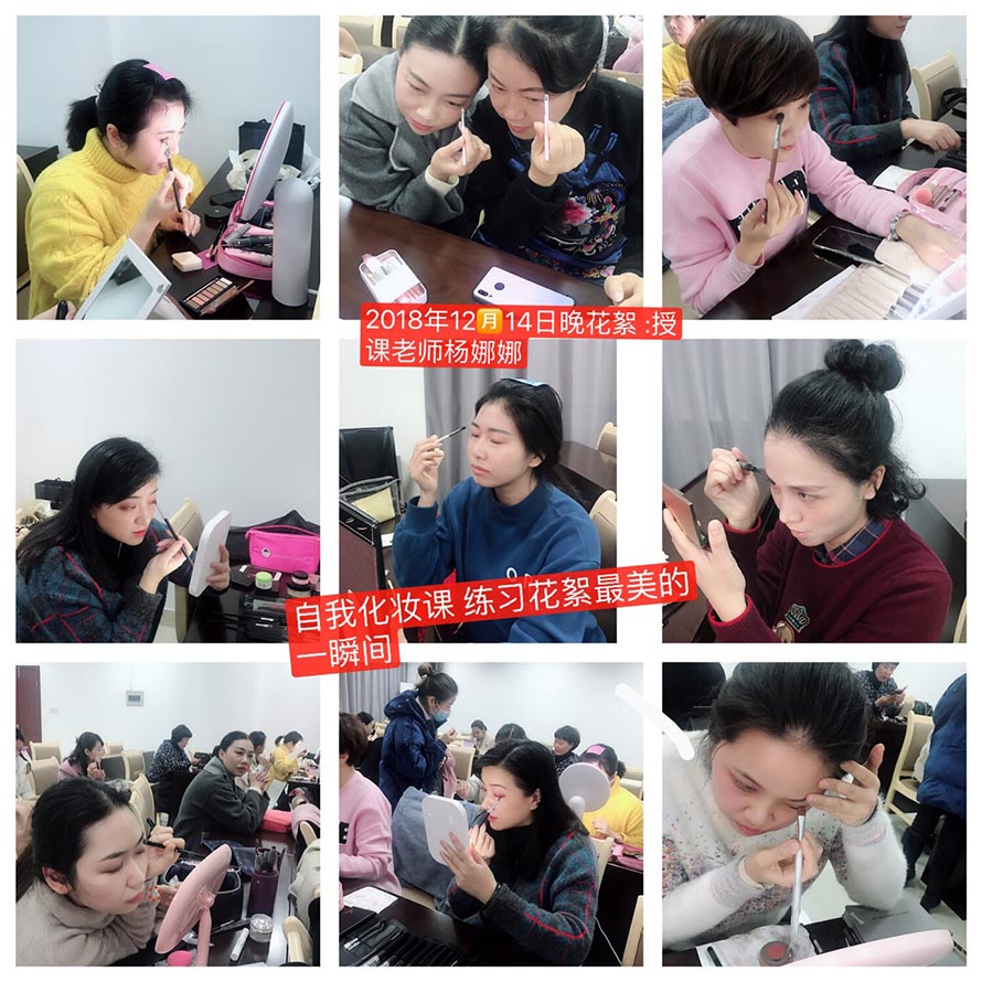 楊老師白天都在陽洋化妝學校上課教學,受樂清市總工會領導邀請,我們楊老師在總工會教政府機關單位女性自我化妝課程,平時楊老師都是柳市樂清虹橋三地上課,比較忙碌,每天的時間都市比較趕,她利用晚上幾個小時的時間去工會上課,每周兩個晚上的課程,老師上課18:40——20:40上課時間,一個班級本來規定是20人以內,但是化妝愛好女性朋友太多啦,聽說1分鐘的網絡搶先報名一瞬就報滿了,都超出了上課的人數30人以上啦,老師利用理論與實踐的上課模式,學生學起來簡單易懂,每位同學都是0基礎來學習,首先講課理論知識——實踐給學生看——再一對一改妝——30多人老師一對一的改,站著改妝,一改都是晚上10點多,在老師的細心教導下,同學們進步非常大,老師非常欣慰,每次下課后 回家還要備課第二天專業化妝班學生的化妝知識。每一屆專業化妝班的學生都會培養一批優秀的化妝創業者