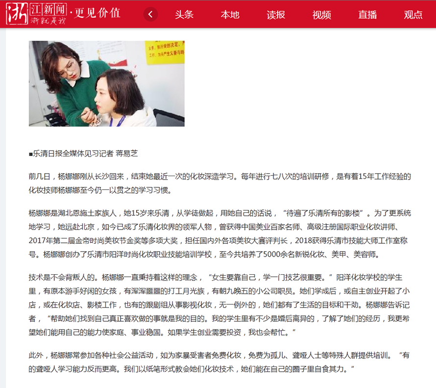 以她專業的授課模式,專注的化妝技能,2018年評為“樂清市工匠” “樂清市高級技能人才 ” “樂清市楊娜娜大師工作室“都是政府部門頒發給楊娜娜老師榮譽稱號。