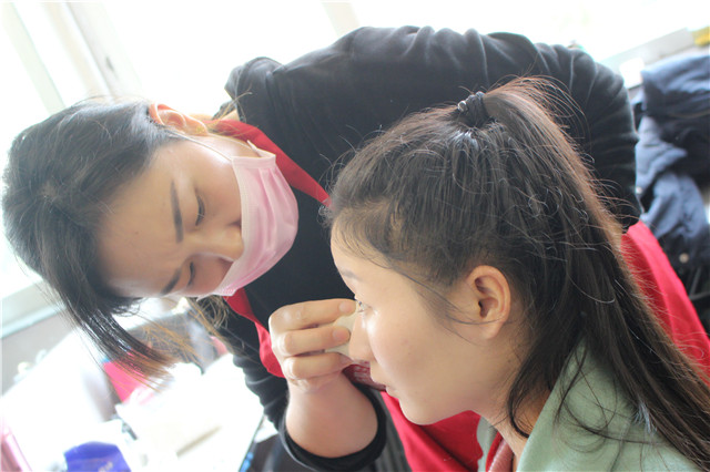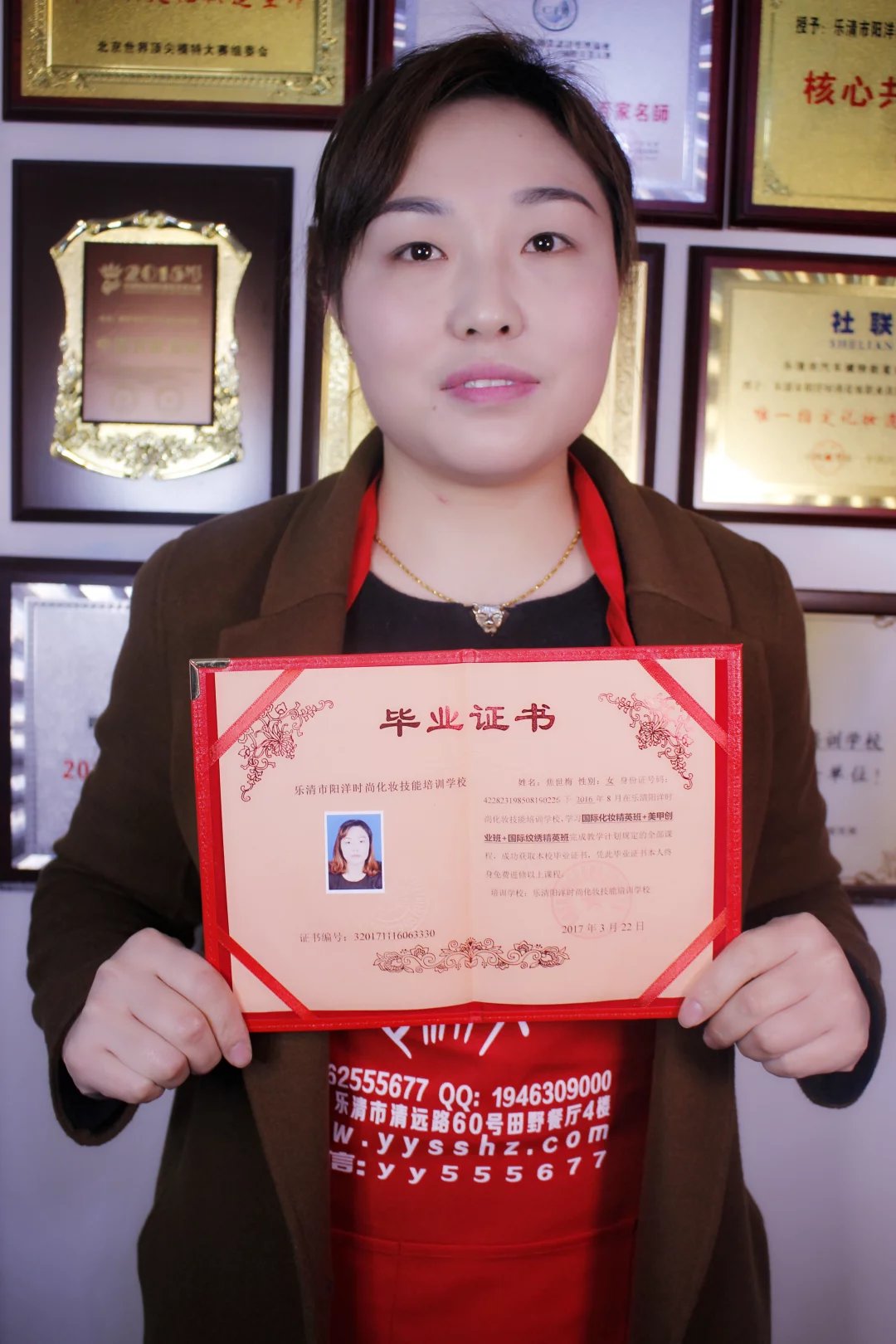 想想曾經的我,就是一個三轉女人。每天把自己弄得身心疲憊,很迷茫。但又不知道怎么樣改變現狀。后來通過朋友的介紹,來到陽洋化妝學校認識了同學們,第一天看到同學們很美,老師更美,我們都來自不同的地方,但很快我們都融入了在一起。第一天聽楊老師講課,覺得她講的很有道理,那么年輕卻培養出那么多優秀的學生,覺得很佩服她。想著自己一定要好好學習,靠自己的努力得到自己想要的東西,到學畫眉毛的時候才覺得好難。不過在老師的指導下,同學們的幫助下,加上自己不斷的努力,現在還是畫的很好。沒有辜負老師的辛苦,想想第一次出去實習,很緊張。全身是汗,到現在可以把別人打扮的漂漂亮亮的,就有一種成就感,還有幸福感。也很自信!