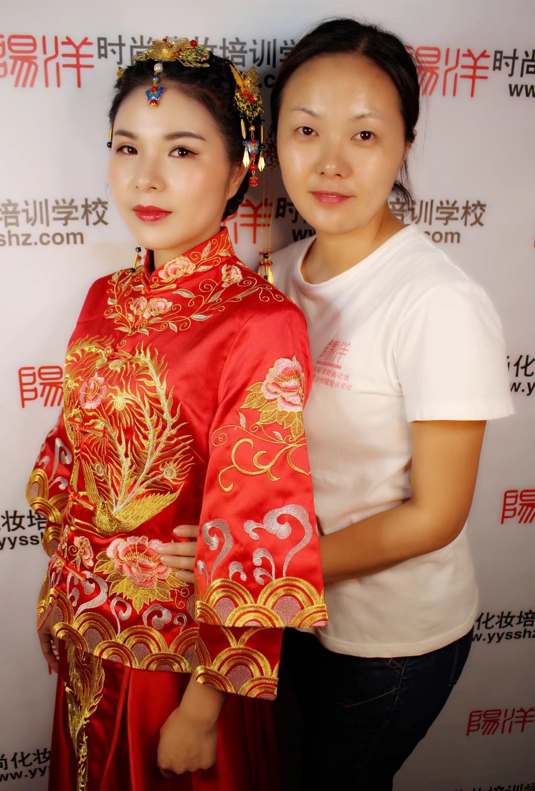 到了第三個月新娘整體造型,各種各樣的新娘造型、只要是關于新娘的妝和發型我都很喜歡,每天都是老師上午實操結合理論、下午我們互練,才發現自己原來也可以這么美,說實話自己結婚那天也沒這么美過,同學技術也是挺不錯的哦,每天見識到不同的妝面和造型,整個學習過程都充滿新奇。很快第三個就過去了進入了月考,考試新娘整體造型,中式新娘整體造型,晚禮整體造型.一天考試三個整體造型,速度都要很快,在規定時間內沒完成,就不行的哦,所以第三個月又這樣迎來了月考,又是順利通過