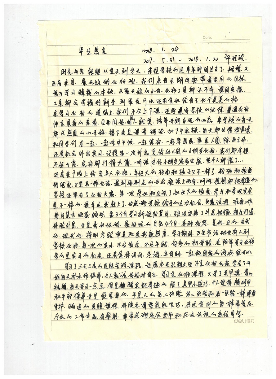 當(dāng)前位置:樂清市陽洋職業(yè)技能培訓(xùn)學(xué)校 » 學(xué)員感悟許玲玲同學(xué)畢業(yè)感言發(fā)布時(shí)間:2018-10-23 10:52:00瀏覽次數(shù):1957 |