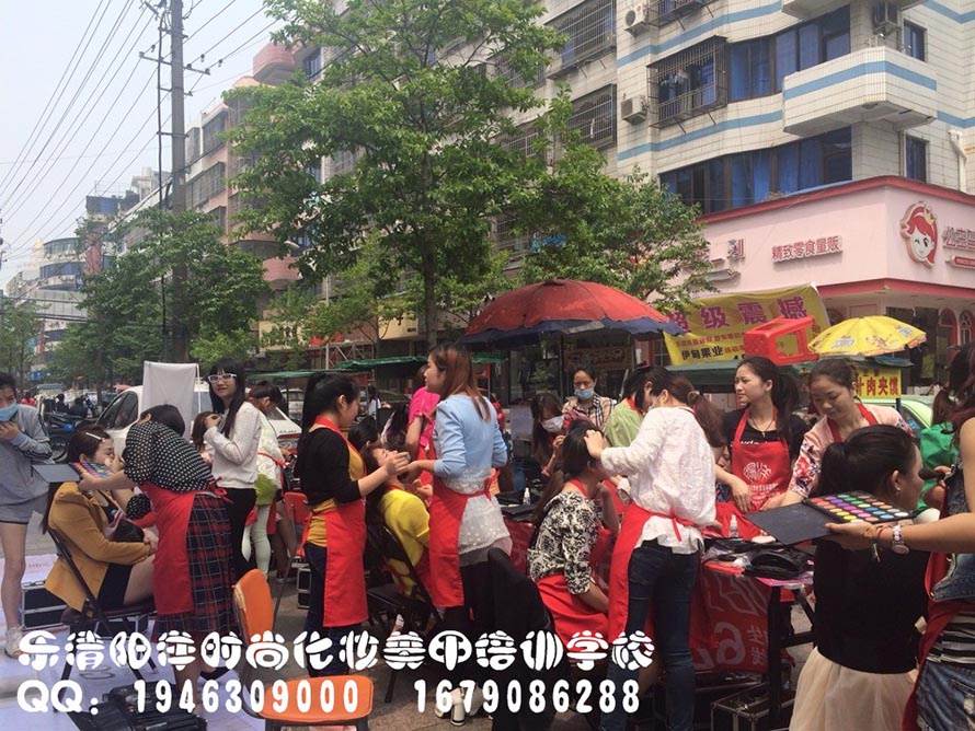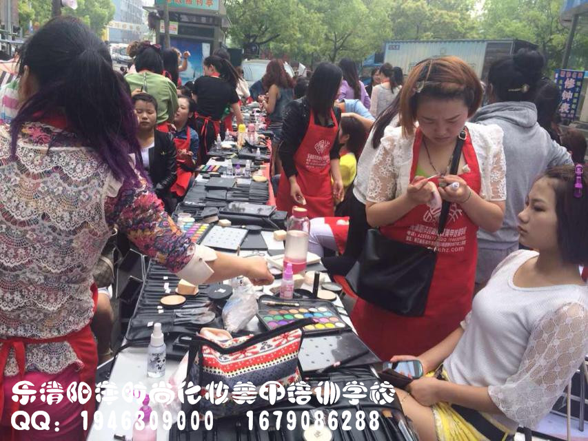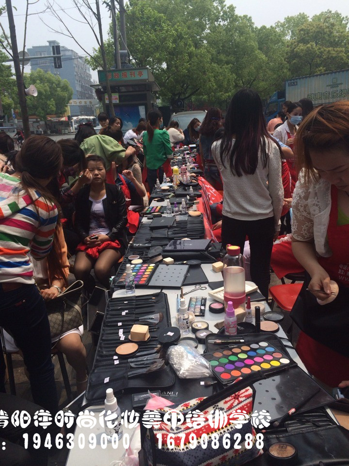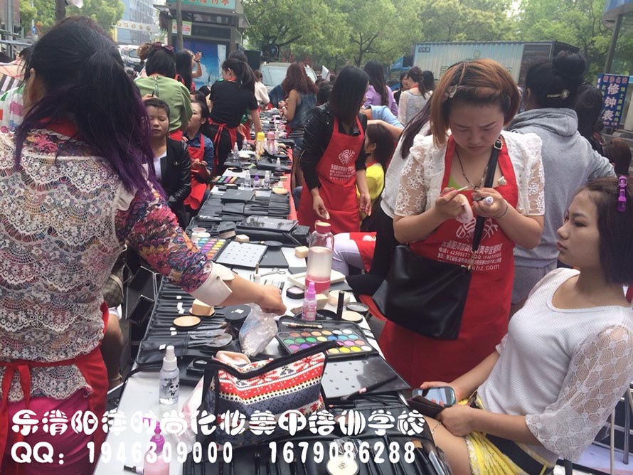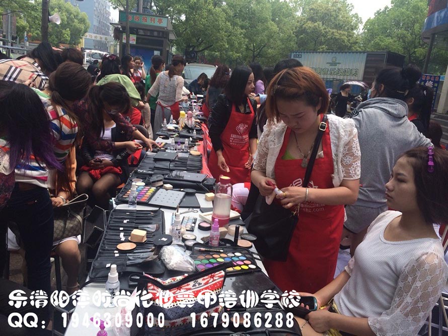 樂清陽洋時尚化妝培訓學校昨日義務免費化妝!同學們都忙個不挺!排隊化妝中