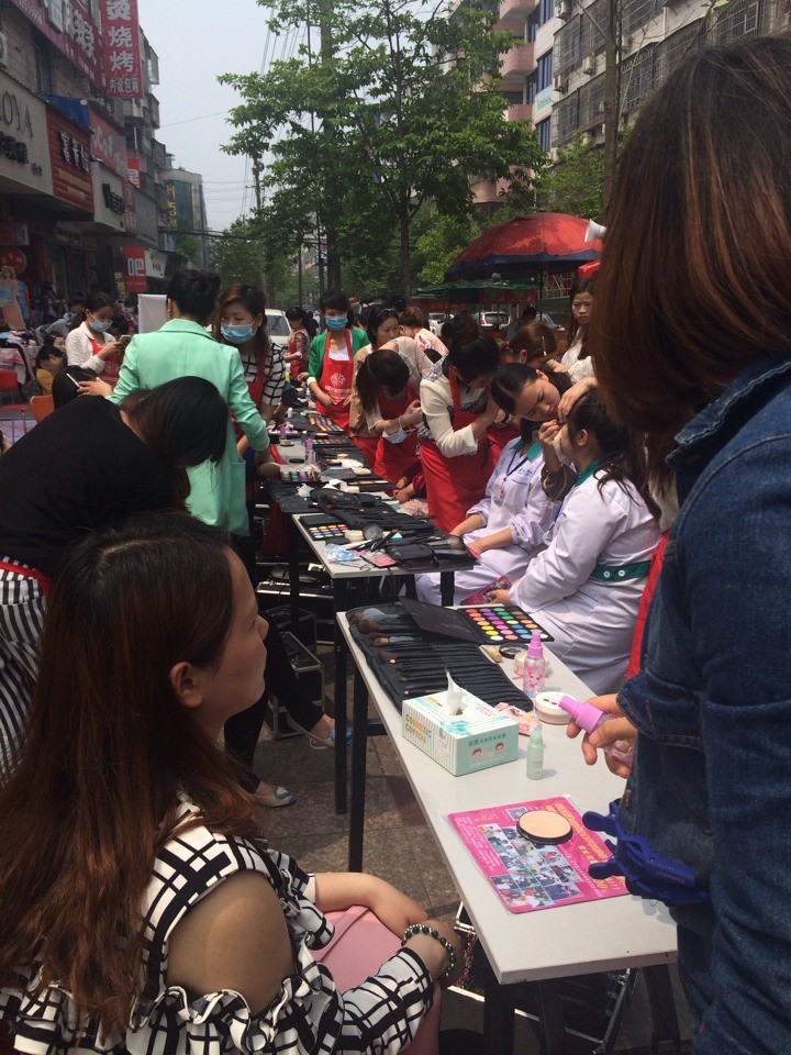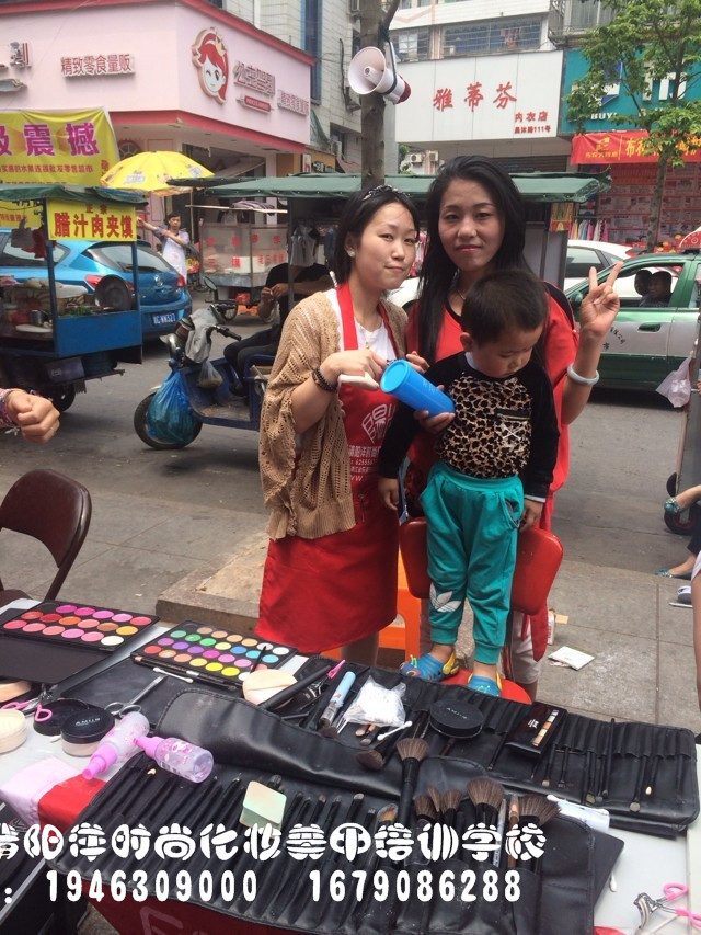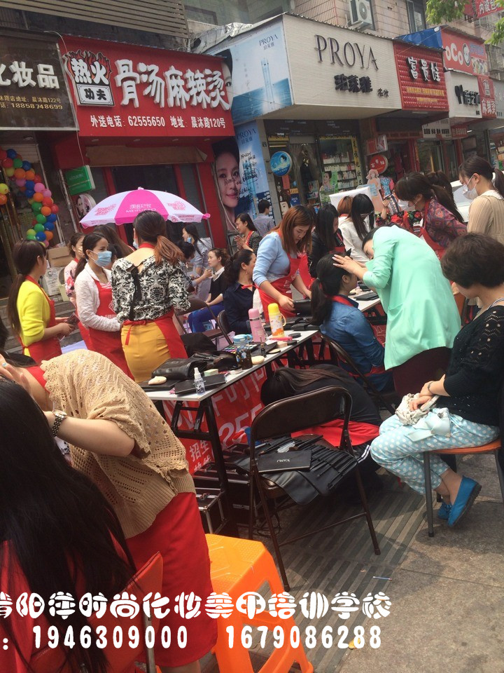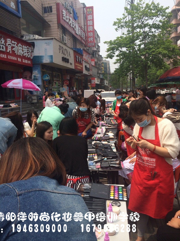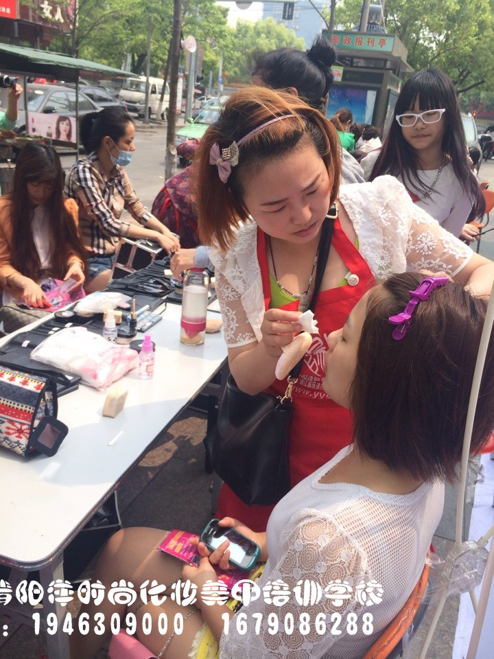 樂清陽洋時尚化妝培訓學校昨日義務免費化妝!同學們都忙個不挺!排隊化妝中