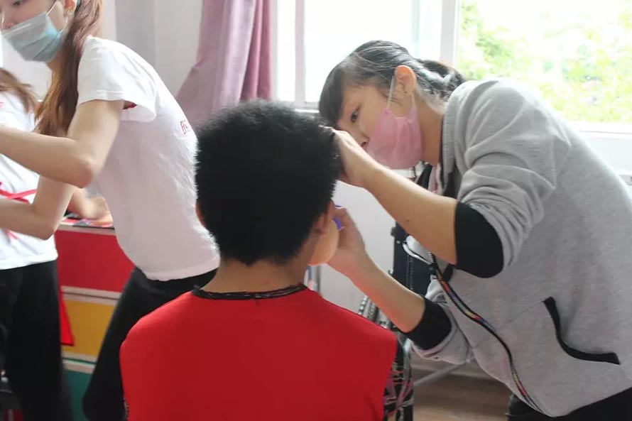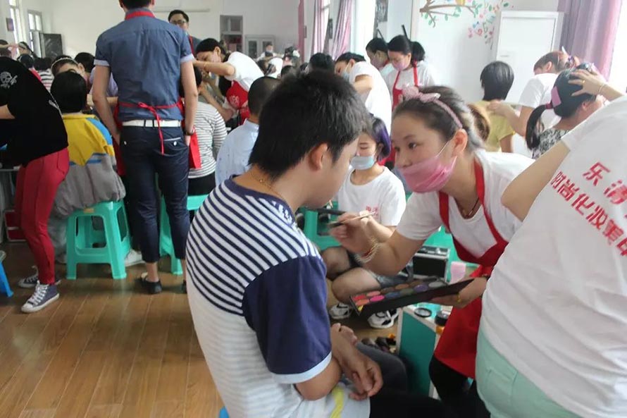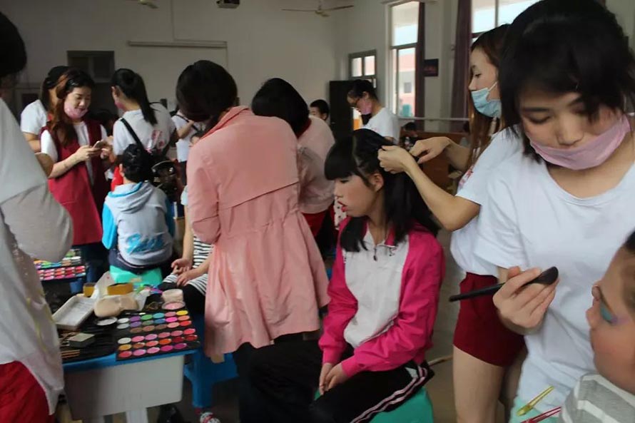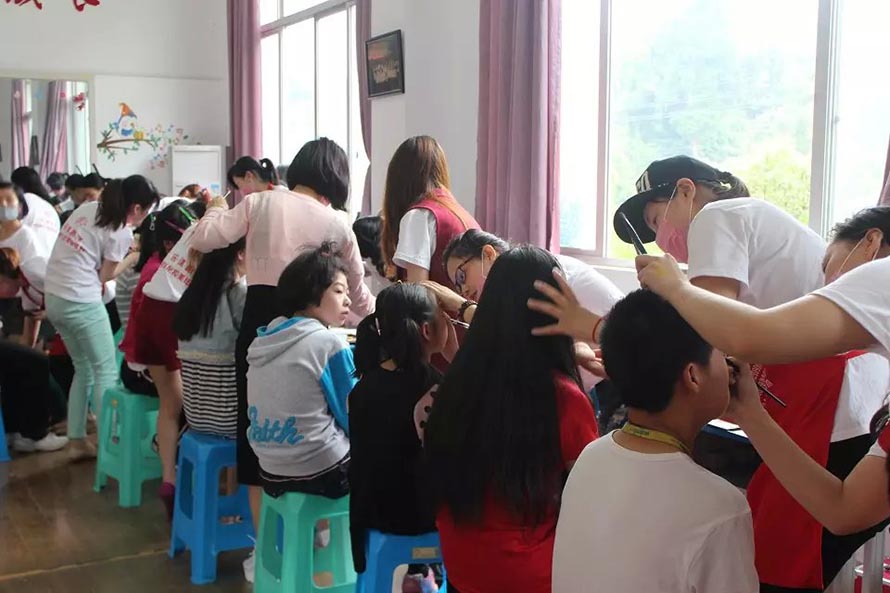 樂清陽洋化妝學校應樂清市特殊學校邀請為演員化妝,我校感到很榮幸!給那些特殊學校里特別需要幫助的同學們,讓他們能更美的出演活動。你們很可愛,但是你們更棒!我相信你們的明天會更美!還有我們學校的化妝師也辛苦了!一大早過來給她們化的美美的妝!看到她們美美的笑容~化妝師們再累也值得!去的學生也是妝畫得非常棒 舞臺效果非常好,給演出增添了漂亮的一筆!感謝樂清特殊學校給了我們學生這么好的機會!看看他們的化妝過程和舞臺效果吧。