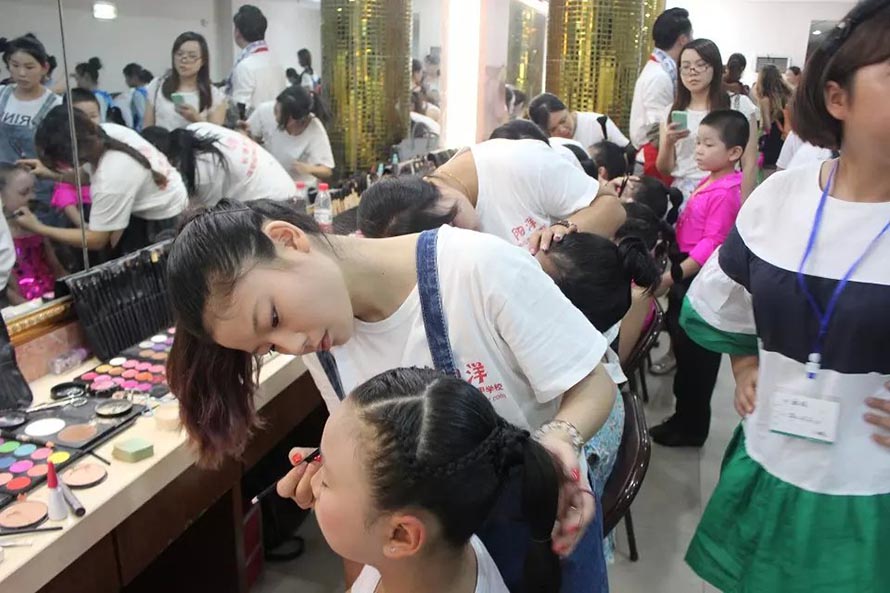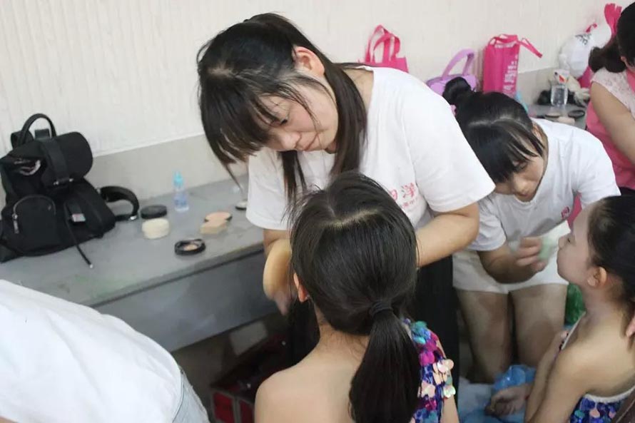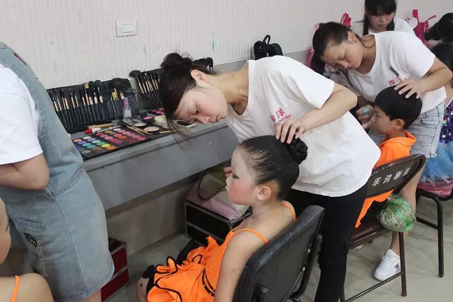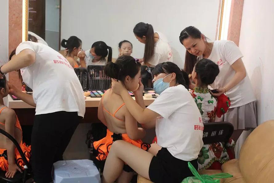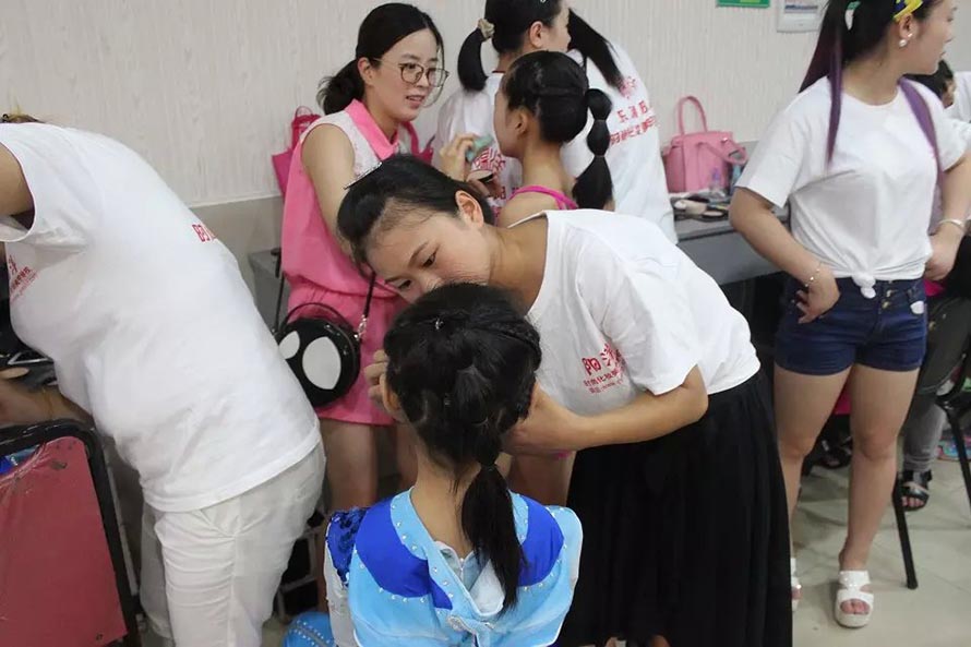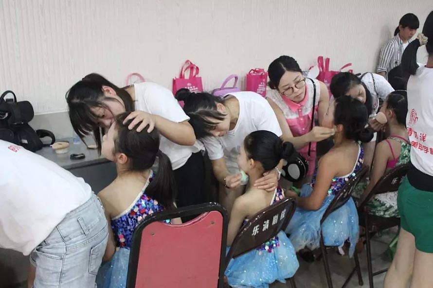 柳市蕾絲舞蹈演出圓滿成功~~化妝現場如此多的人~今天雖然演員有500多人~我們只用了5個小時妝面和發型基本全部搞定~雖然很忙碌~但是今天化妝現場次序特別好~一點不亂~老師們管理特別好舞臺上的每一位可愛的演員們都是我們學校的化妝師一個下午的勞動成果~各種各樣的妝都有~主要有戲曲妝,歐式妝~倒勾妝~球體眼妝~炫彩煙熏妝等~爵士舞蹈妝~拉丁舞妝~芭蕾舞妝等~28號白象蕾絲舞蹈~30號柳市蕾絲舞蹈~一起一共1000多個舞蹈者是有的~28號那天學生跟妝7點回家~30號跟妝9點回家~感謝蕾絲舞蹈老師對我們的信任~感謝我們陽洋化妝學校的每一位化妝講師~感謝我可愛的同學們~大家都很愛實習~每次實習進步都特別大~速度也很快~努力了一定會有收獲哦~~~