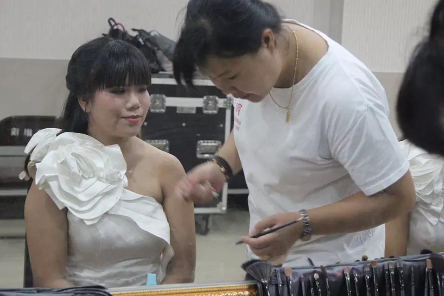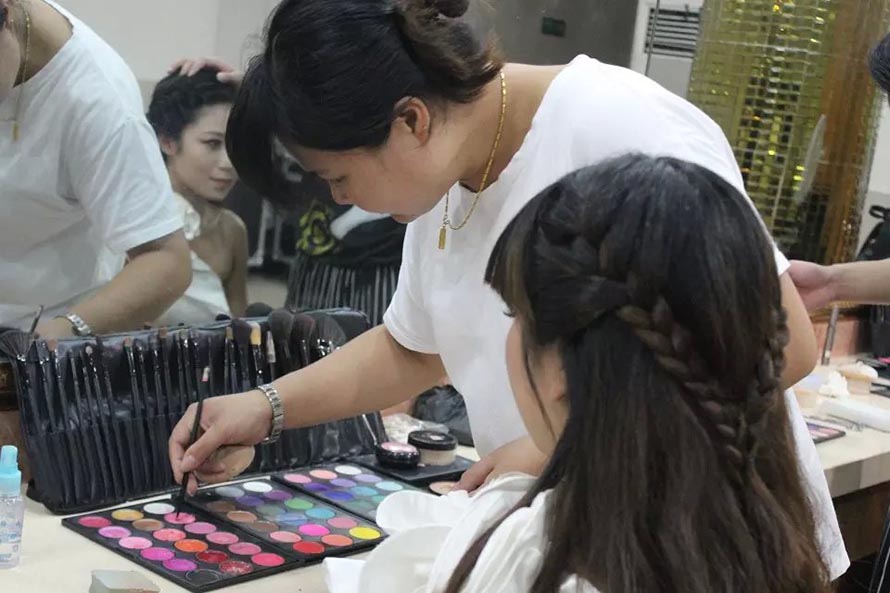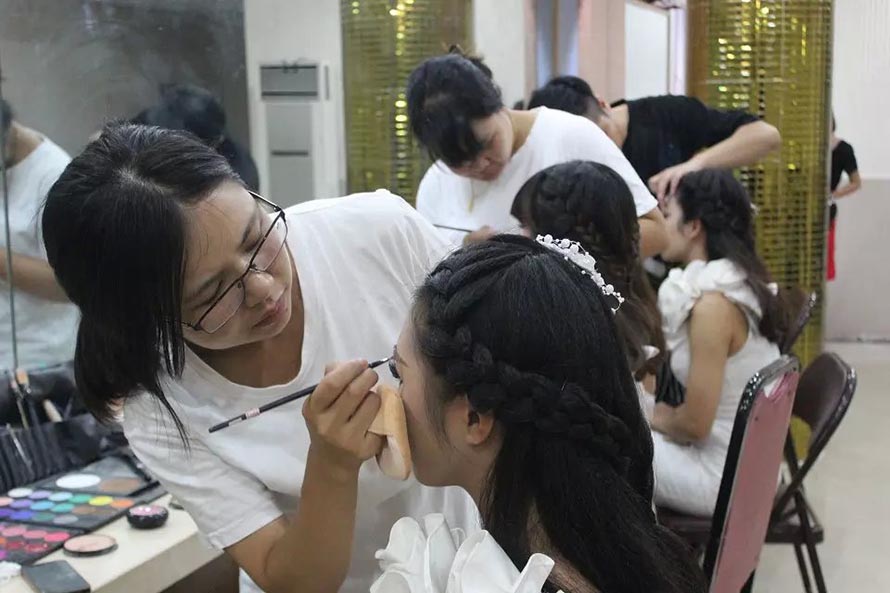 2015年8月8日樂清陽洋時尚化妝美甲學校受春華教育集團之邀為他們的演出人員化妝造型。化妝現場同學們拿出平時練習的狀態給演出人員化妝,化完妝的演員們對同學們的化妝技術贊不絕口,同學們十分的有成就感,此次實習大大提升了同學們的自信心,也讓自己的化妝技術更加熟練。