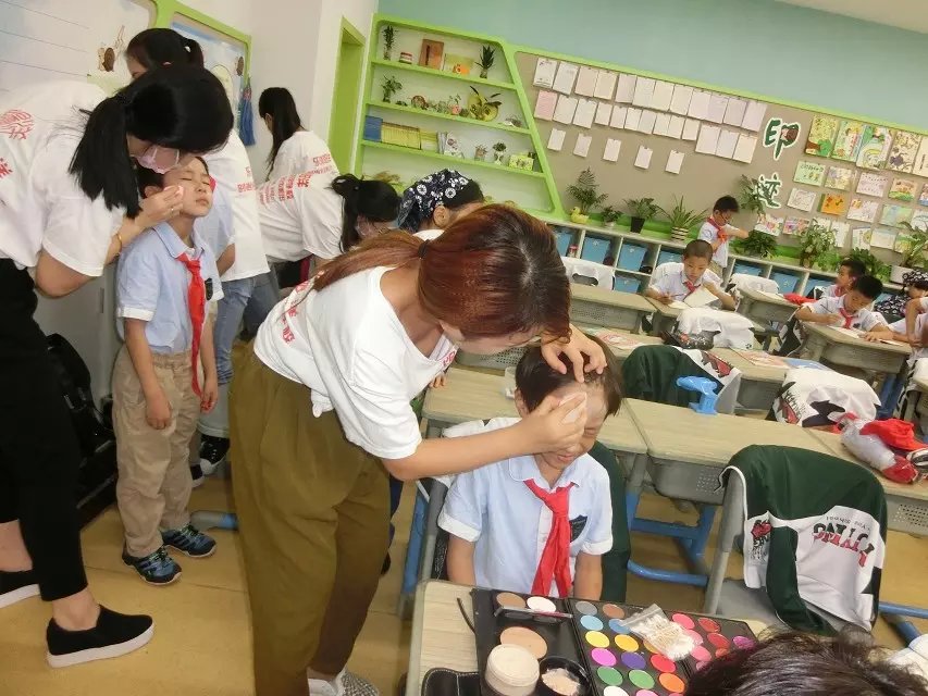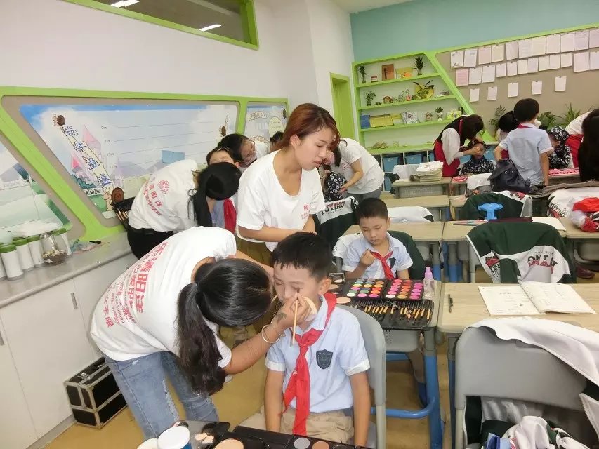 2015年10月23號樂清陽洋時尚化妝美甲學校為了讓眾多的化妝學員體會化妝師的一些簡單工作任務,繼而受邀擔任了育英小學演出化妝造型,這種活動雖然看似很一般,但是它針對初學的化妝學員來說,這是一個適合的展現自我化妝能力的機會。真正的化妝師,是能夠在不同的場合和不同的服務對象中穩定地發揮自我化妝實力,盡可能地滿足客服對妝面的各種要求。這次的“主角”是一群可愛的小演員們。同學們也非常感謝學校給予這次化妝實踐機會,讓大家在畢業步入工作崗位之前學習到更多不同的彩妝風格!