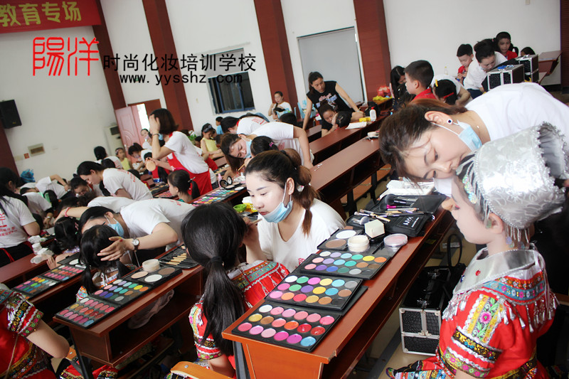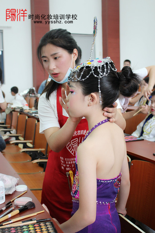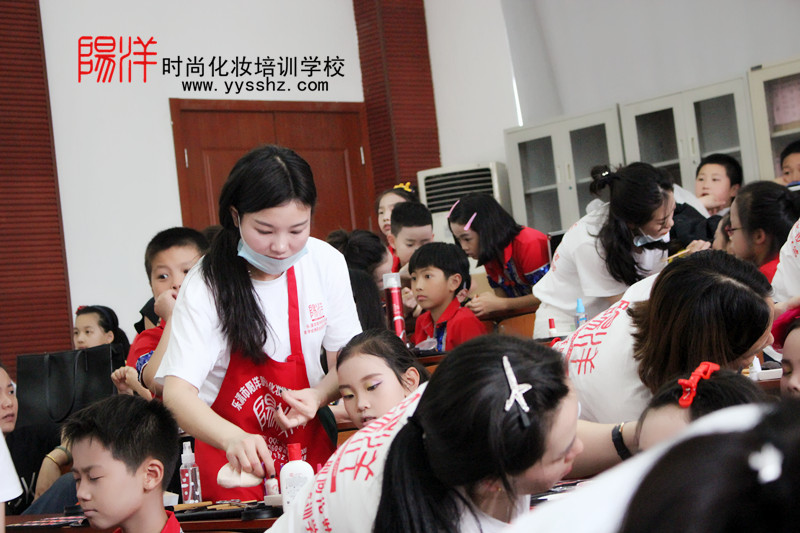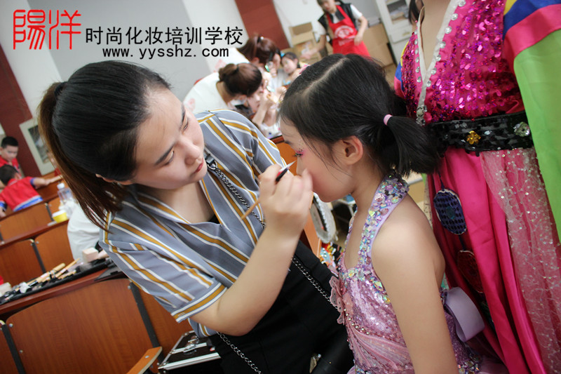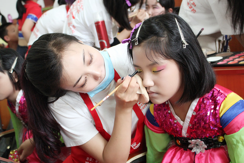 參加此次活動的公派化妝師 化妝新班一班,二班,三班為此次活動提供化妝造型服務,樂清陽洋化妝培訓學校的學員一到現場,便馬不停蹄地開始緊張有序地工作,各施所長,給等待上妝的孩子們精心打造完美的妝容,讓孩子以一種最美的姿態展示于現場。