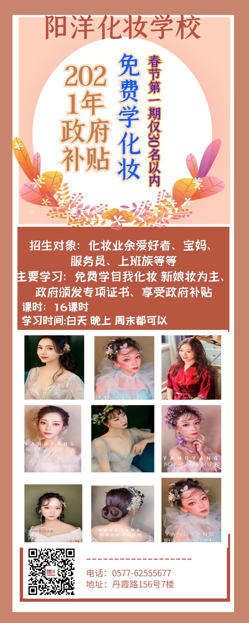 2021年政府補貼學習免費學化妝、年前開課、名額限制前30名發布時間:2021-1-23 14:35:12 瀏覽次數:1996 |