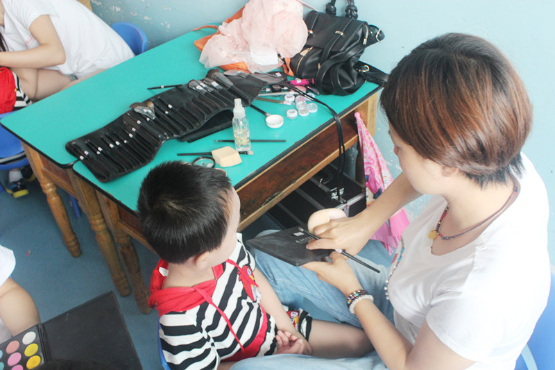 學(xué)員們正在的幫助小朋友化妝,雖然需要畫(huà)100多人的妝面,學(xué)員并沒(méi)有慌亂,在老師的帶領(lǐng)下有序的挨個(gè)化妝。