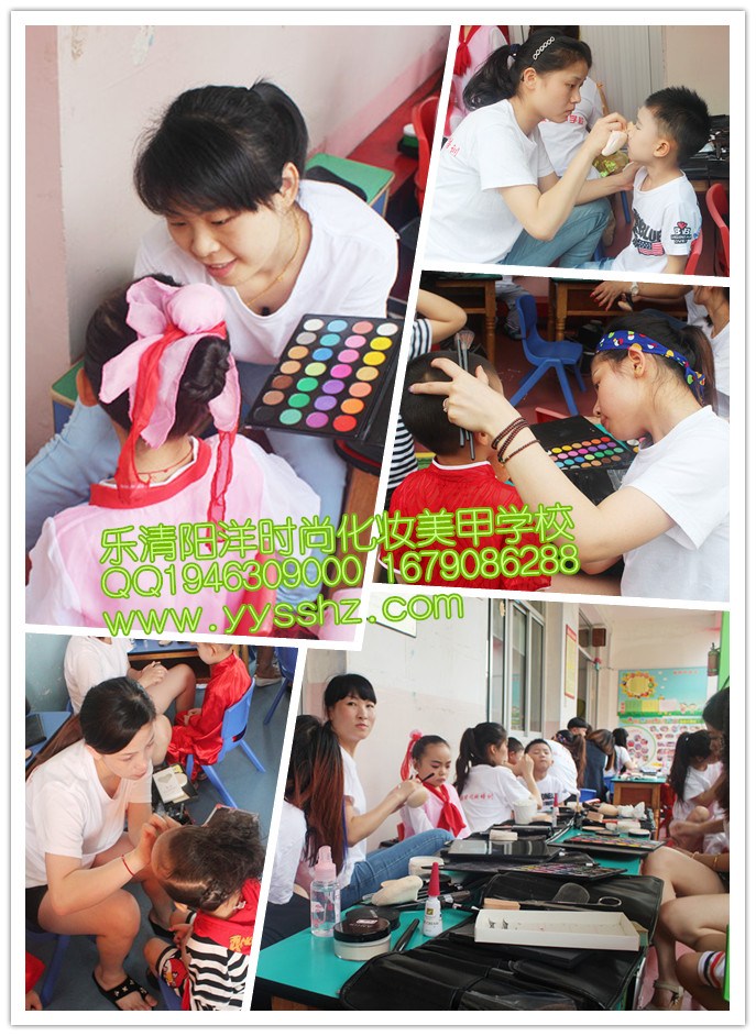 2014年陽(yáng)洋時(shí)尚化妝美甲學(xué)校擔(dān)任樂(lè)清東山南幼兒園文藝演出化妝造型。 全場(chǎng)化妝由陽(yáng)洋化妝的學(xué)生完成,一個(gè)小時(shí)快速化了100多個(gè)小朋友,畫(huà)出來(lái)的妝老師們和家長(zhǎng)都很喜歡 去化妝的學(xué)生最短的才學(xué)十幾天,最長(zhǎng)的也就2個(gè)月多,每個(gè)學(xué)生都很棒!! 我們始終相信,外出化妝實(shí)戰(zhàn)是學(xué)習(xí)化妝的最好提升技術(shù)和檢驗(yàn)技術(shù)的方法。伙伴們,你們辛苦了!