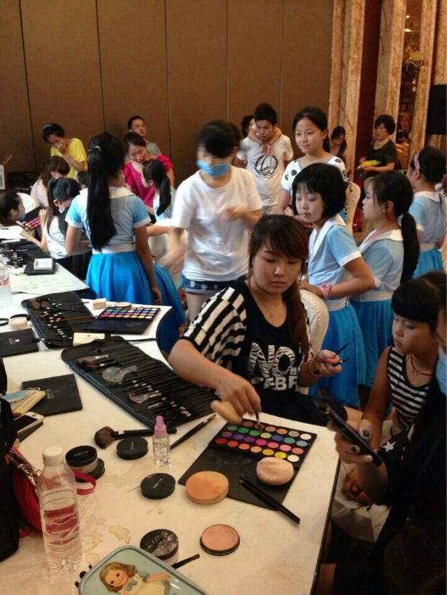 陽光明媚,陽洋時(shí)尚化妝培訓(xùn)學(xué)校的學(xué)生,為蕾絲舞蹈的可愛的小朋友們化妝,小朋友高興極了,一個(gè)個(gè)歡蹦亂跳,看著這群可愛的朋友們,化妝師們?cè)傩量嘣倮哿艘仓盗耍F(xiàn)在我們看看那天化妝師為可愛小朋友化妝的場(chǎng)景吧!!