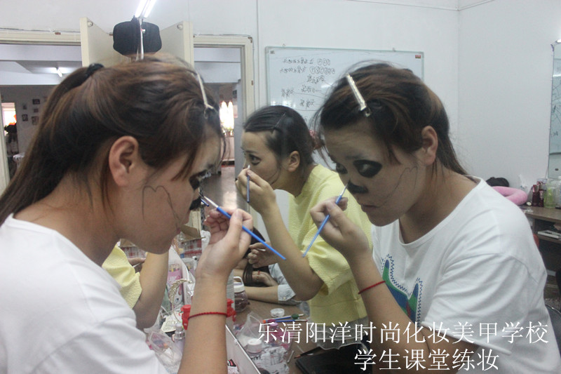 今天老師的課堂給大家呈現的是一個骷髏妝,妝型以黑色的骷髏配上黑色的披風,這樣一個妝型的形成在課堂上呈現出來之后,觀眾們就發現這樣精彩的妝型,原來是那么簡單和迅速。現在就讓我們跟著化妝師的筆刷來看看這個妝型的形成過程 化妝師的神奇魔力就體現在這里了。能夠化腐朽為神奇,在化妝師神奇的技術下,再逼真的造型也能夠輕松的化出來。樂清陽洋時尚化妝美甲學校就是這樣一個能夠創造奇跡的學校。