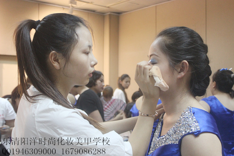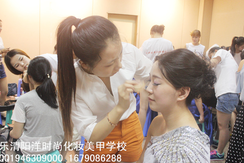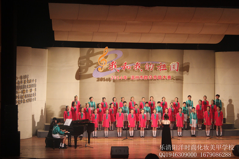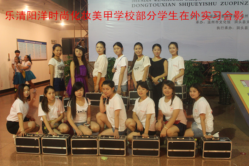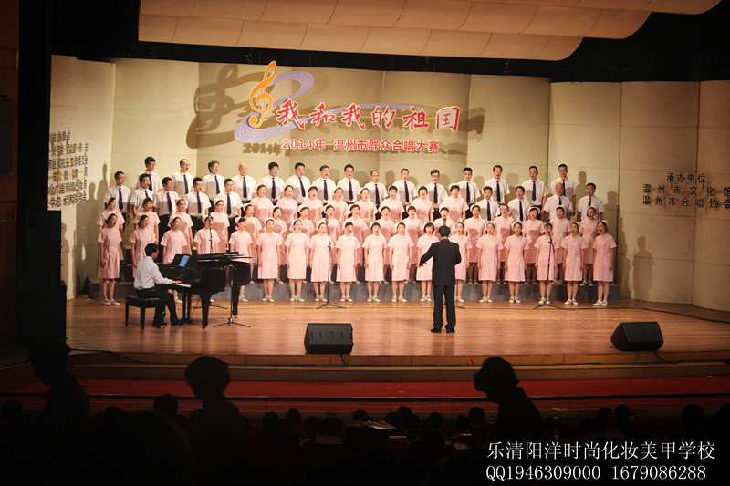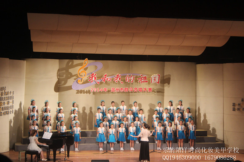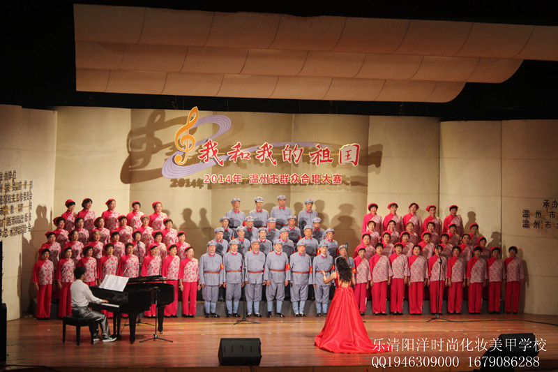 我和我的祖國2014年溫州市合唱大賽!!陽洋時尚化妝美甲培訓學校擔任本次化妝造型!非常炎熱的夏天!溫度38度左右!部分學生不怕天熱!不怕吃苦 !跟著老師一起來到溫州東南劇院化妝造型!有的同學暈車!有的同學身體不舒服!但是大家都很想實習!所以不顧一切困難來到現場化妝!她們跟本沒想到自己才短短學20多天的妝面得到這么對顧客的認可!同學們自信滿滿!她們說我們很累!但是我們很開心!!一位同學說我最愛實習拉!今天感覺自己好有成就感呀!大家都滿臉笑容。 比賽正在進行中…辛苦拉可愛的同學們!妝面演員們很喜歡哦!表現很棒!特別是同學們的眉毛!客人夸了又夸!學的20多天學生的眉毛和速度得到很多顧客的讚賞!謝謝大家一直對我們學校學生妝面的認可!謝謝大家一直對我們陽洋時尚化妝美甲培訓學校的信任!下面來看看我們的工作花絮吧!