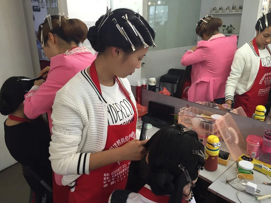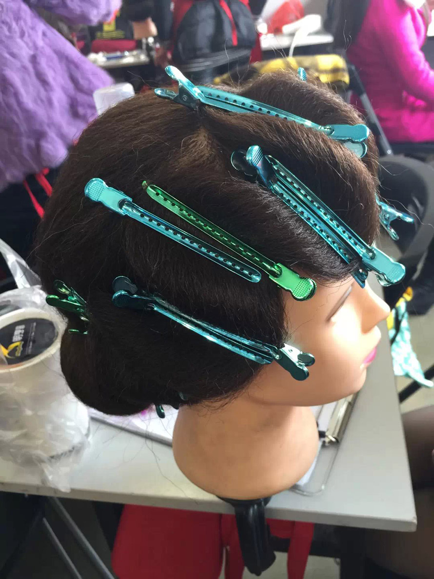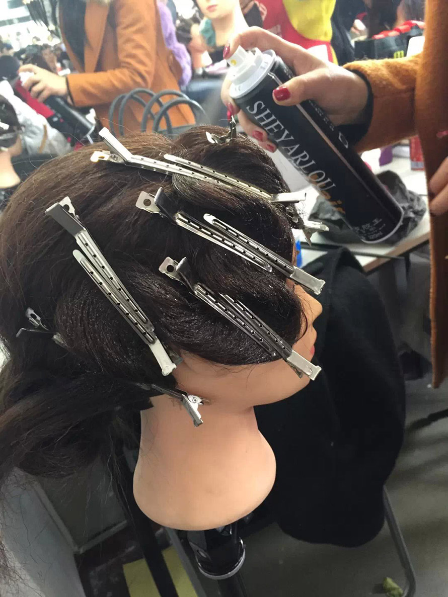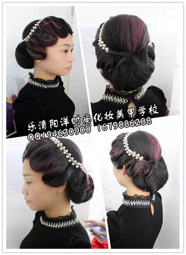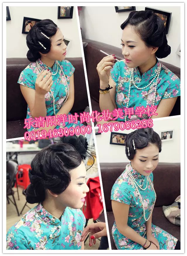民國是西風東漸表現最突出的時期。我們對那個年代的文化的記憶,最深刻的應是服裝造型了。民國時的旗袍讓我們留戀,而當時的一種發型也曾風風靡一時。你知道是什么嗎?復古風靡浪潮高漲的今天,怎么能不跟樂清陽洋時尚化妝美甲學校學一款手推波紋發型呢,準備艷驚四座吧。 我們來到2015年第六屆學生的盤發課堂上,學生們此刻正在為這次的造型忙碌著。