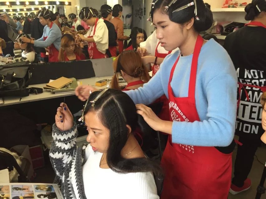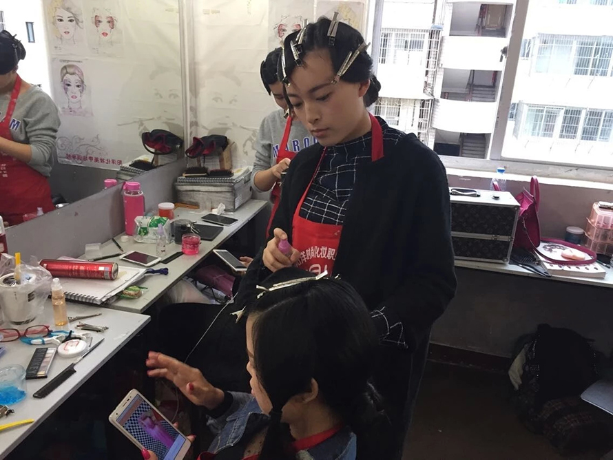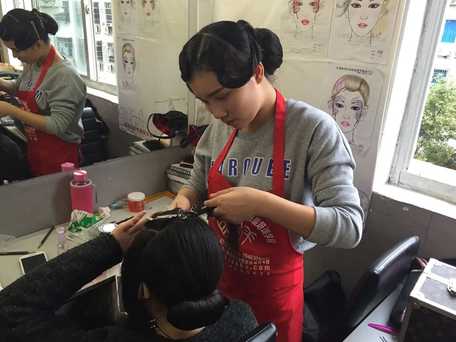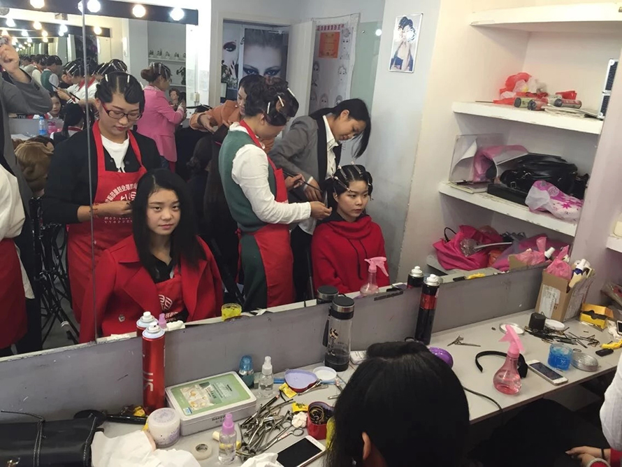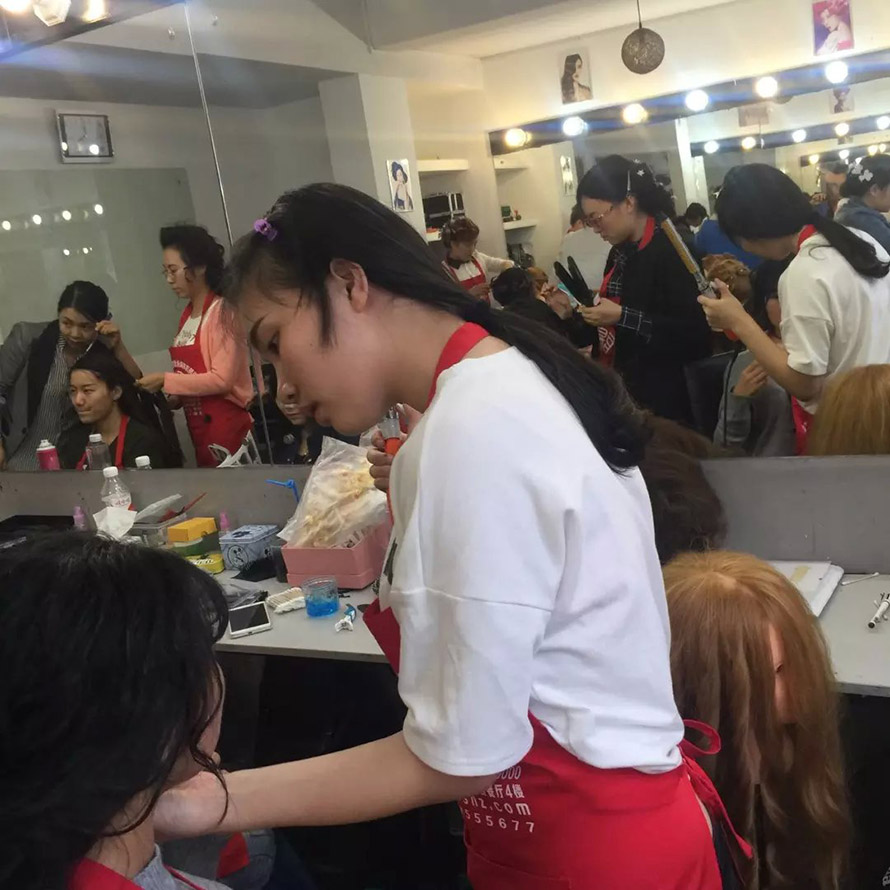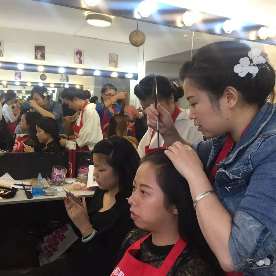 民國是西風東漸表現最突出的時期。我們對那個年代的文化的記憶,最深刻的應是服裝造型了。民國時的旗袍讓我們留戀,而當時的一種發型也曾風風靡一時。你知道是什么嗎?復古風靡浪潮高漲的今天,怎么能不跟樂清陽洋時尚化妝美甲學校學一款手推波紋發型呢,準備艷驚四座吧。 我們來到2015年第六屆學生的盤發課堂上,學生們此刻正在為這次的造型忙碌著。