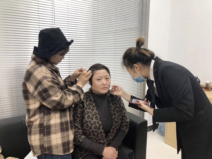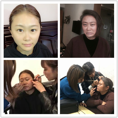 對于在學習的化妝師而言,每一次實際操作的機會都值得珍惜,因為正是一次次的動手去“做”,去“完成”,讓自己的化妝技術得到積累和提升。對于還未出師的學員們來說,每一次實習的機會更是難能可貴。 ···· 11月下旬,某劇組在樂清虹橋取景拍攝微電影,樂清陽洋化妝美甲紋繡學校,楊洋校長、帶領國際化妝班的學生、糖糖、雪麗、程亞 、 群英、以及和王老師 小喬老師 菲菲老師 安迪老師前往劇組參與化妝工作、該劇組的演員大多數是20出頭的年輕人,扮演59歲左右年齡階段的老頭子和老太太的角色,同學們學習了老師平時在課堂上講的老年妝的畫法可以利用起來。