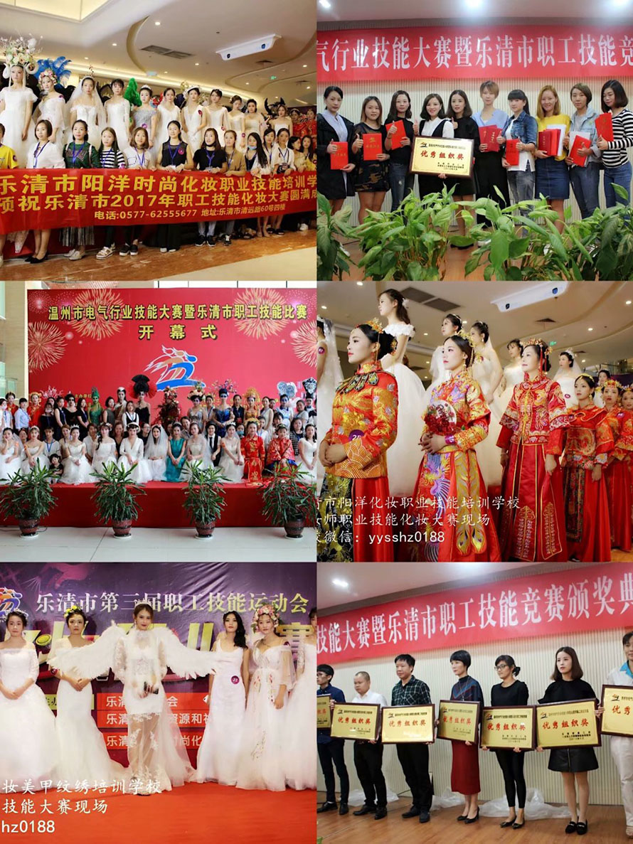獎(jiǎng)項(xiàng)設(shè)有 :一等級(jí)、二等獎(jiǎng)、三等獎(jiǎng)若干名、另設(shè)優(yōu)秀獎(jiǎng)若干名、獲得本次大賽大賽第一名的選手由樂清市人力資源和社會(huì)保障局、市總工會(huì)分別授予 “樂清市技術(shù)能手” “樂清市職業(yè)技能帶頭人”榮譽(yù)稱號(hào)。 參賽時(shí)間為2019年11月21日 參賽地點(diǎn):南虹廣場(chǎng) 比賽項(xiàng)目:1.新娘妝 2. 時(shí)尚創(chuàng)意妝 3.整體創(chuàng)意美甲 4.紋繡眉毛 參賽對(duì)象:全市美業(yè)人員、化妝師 、美甲師、紋繡師、均可報(bào)名參加本次職工技能競(jìng)賽。 報(bào)名要求:參賽選手提交身份證復(fù)印件、兩寸彩照2張、 報(bào)名截止日期2019年11月15日 報(bào)名地址: 1.市總工會(huì)社會(huì)工作部(樂清市伯樂東路918號(hào)) 聯(lián)系人朱潔潔 電話:61886520 2.樂清市陽洋時(shí)尚化妝職業(yè)技能培訓(xùn)學(xué)校 (樂清市清遠(yuǎn)路60號(hào)四樓) 聯(lián)系人:吳夏瑩 電話:62555677 18958776527 往期大賽花絮