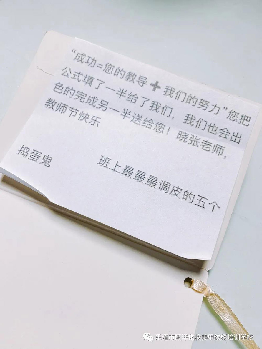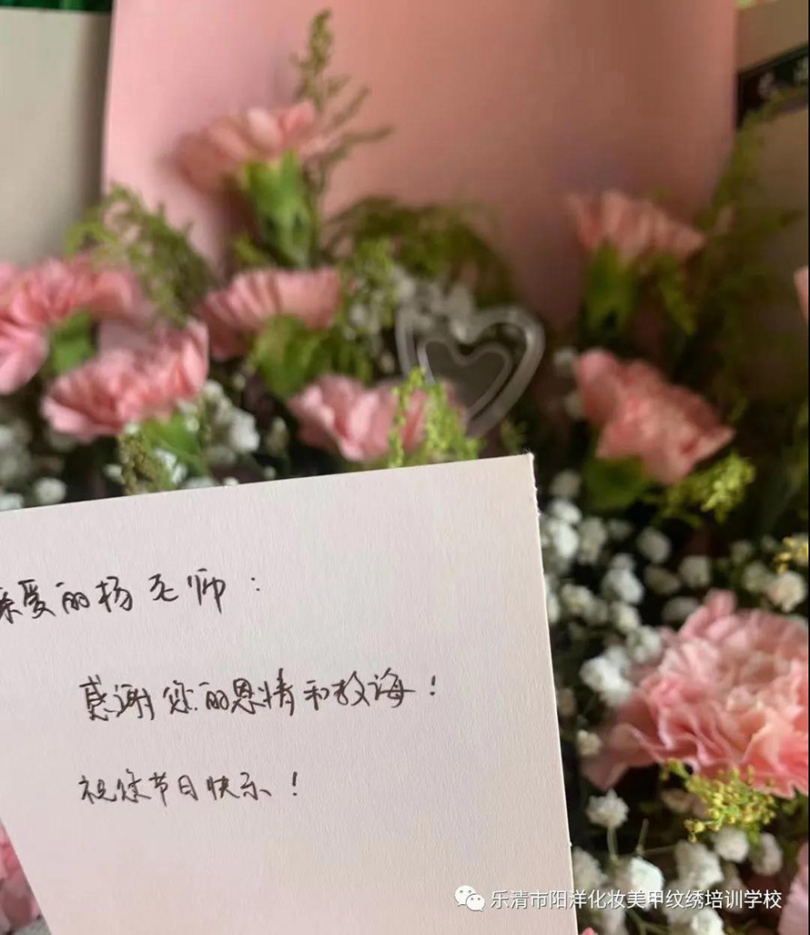 不求桃李滿天下,只去無愧于初心。懂得“感恩”是一種生活態度,是一種美德。9月10號教師節,弘揚尊師重道的優良傳統,再一次拉近了師生之間的距離,讓老師們度過了一個難忘的教師節。 感謝學生們送的鮮花禮物和賀卡還有各種小驚喜,陽洋化妝學校祝你們前程似錦,越來越優秀!