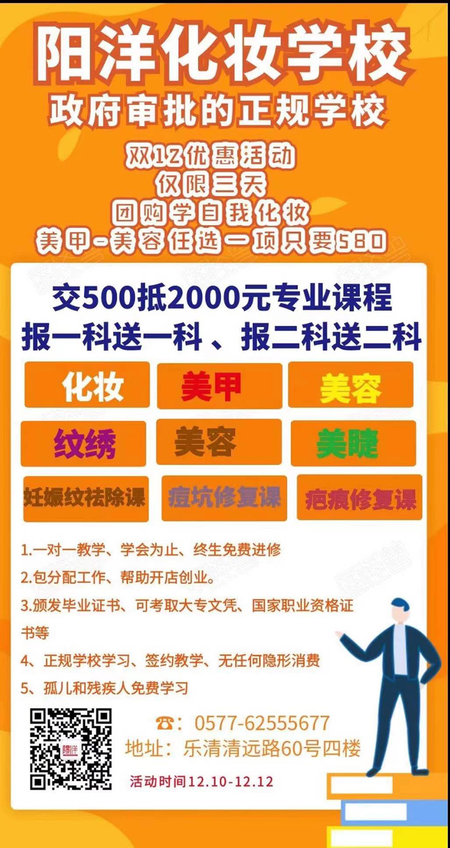 當前位置:樂清市陽洋職業技能培訓學校 » 學校新聞2020年雙12陽洋化妝學校報名活動火熱開始啦發布時間:2020-12-10 14:08:09 瀏覽次數:1953 |