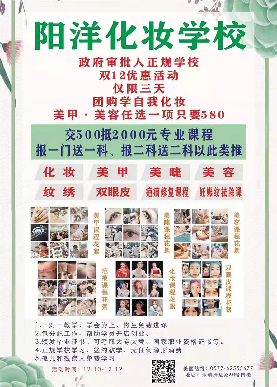 - 樂清陽洋化妝培訓學校喊你來砸金啦!你還在等什么?