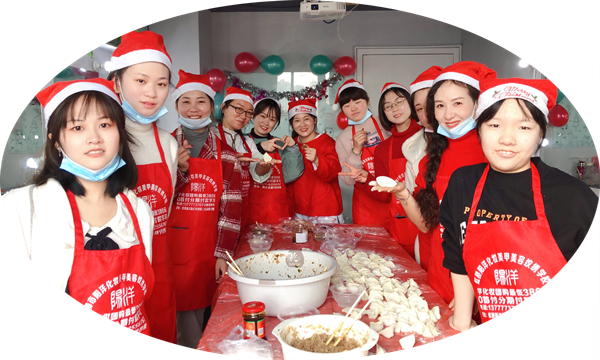活動的重點來啦!我們大家圍在一起,有說有笑的包餃子咯~還有同學說來個包餃子競賽,看看誰在規定時間包的又快又多?;顒蝇F場場面熱鬧,氣氛活躍,大家真的是都特別開心。