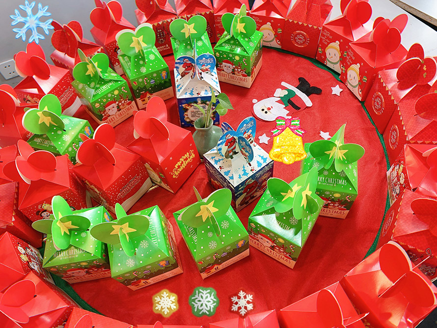 看看我們的學校,在我們可愛的老師齊心協力的巧手裝扮下,滿滿都是溫馨、浪漫的節日氣氛。
