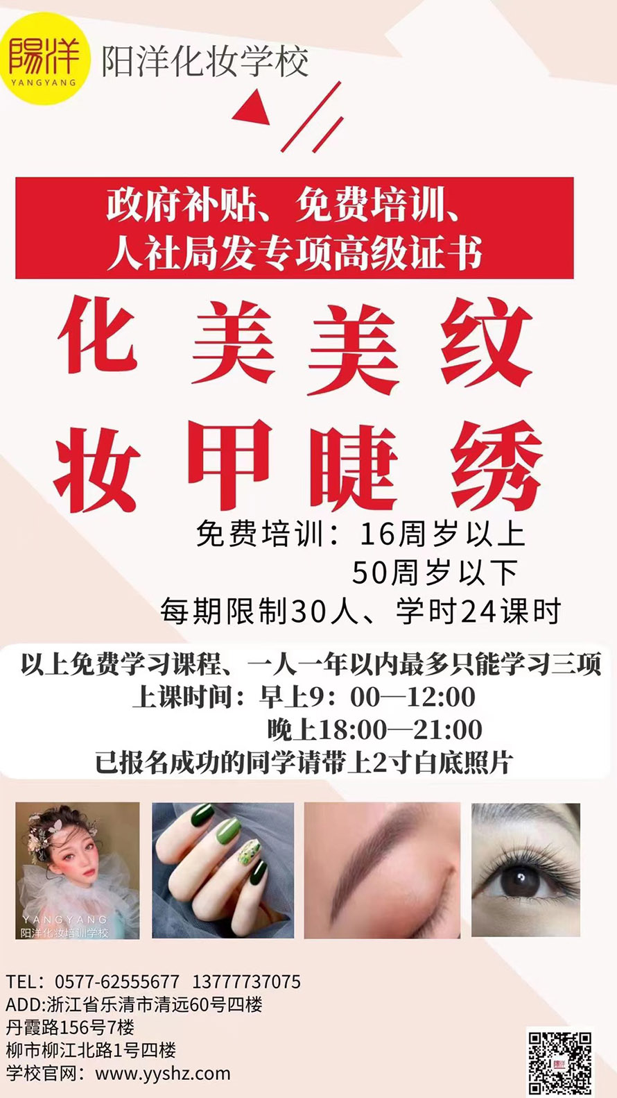 免 費培訓專業:化妝、美甲、美睫、紋繡